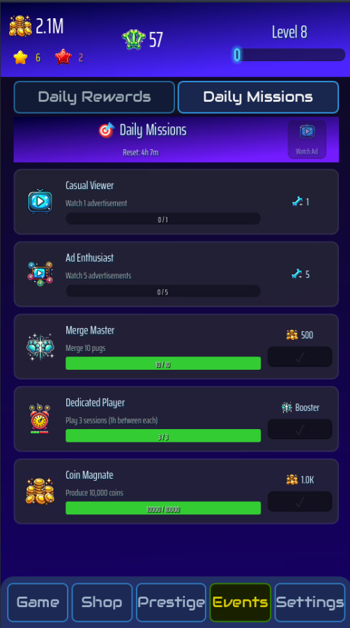 Misiones diarias y un calendario de recompensas de 30 días