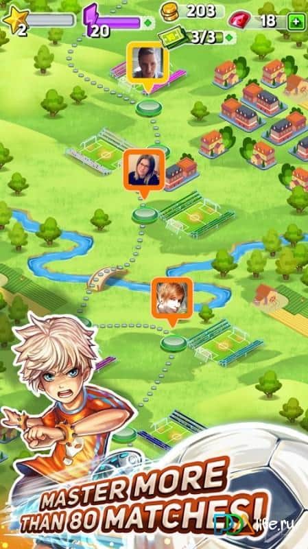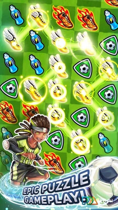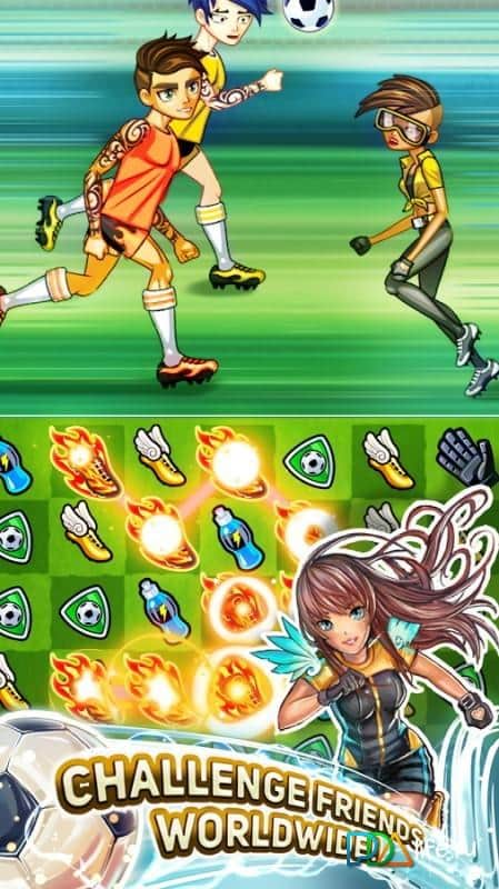 Puzzle de Fútbol – juego de deportes de tres en fila donde tienes que poner todo tu pensamiento lógico para marcar goles. Crea un equipo de fútbol invencible y marca goles uno tras otro en la meta del oponente. Prueba diferentes objetos en la parte inferior de la pantalla en la misma fila de tres y ataca la meta del oponente. Cada jugador en el juego tiene sus propias habilidades únicas, úsalas y desafía a los equipos más fuertes. Intercambia los objetos formando la combinación más exitosa, y aplica combos usando bonos. Desafía a tus amigos y juega con ellos, llevando a cabo un ataque exitoso, ganando suficientes puntos.
