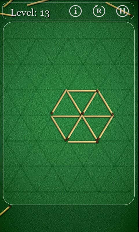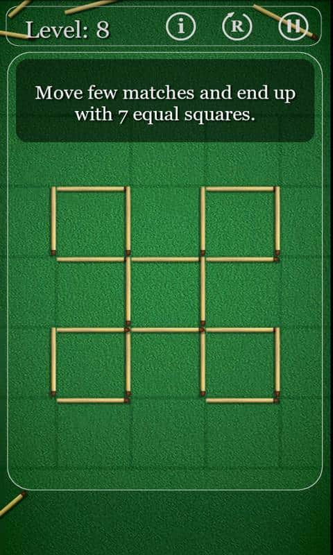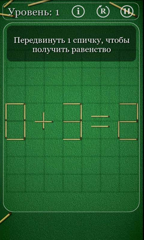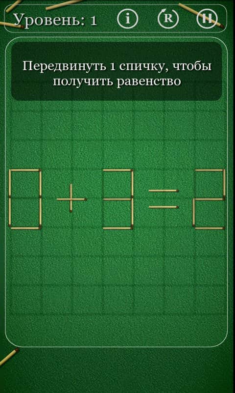 Rompecabezas con Fósforos - ¡un genial rompecabezas con fósforos! El problema es el siguiente: ante ti hay una figura, dispuesta con fósforos, tu tarea es mover un número específico de fósforos para obtener la nueva figura requerida por el trabajo. ¡Los fósforos pueden ser movidos, quitados, añadidos, dependiendo de la tarea! ¡Algunos niveles tienen más de una solución! Bueno, si estás completamente atascado - ¡hay una pista!