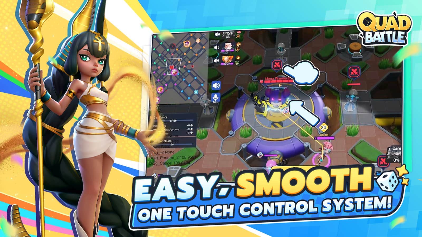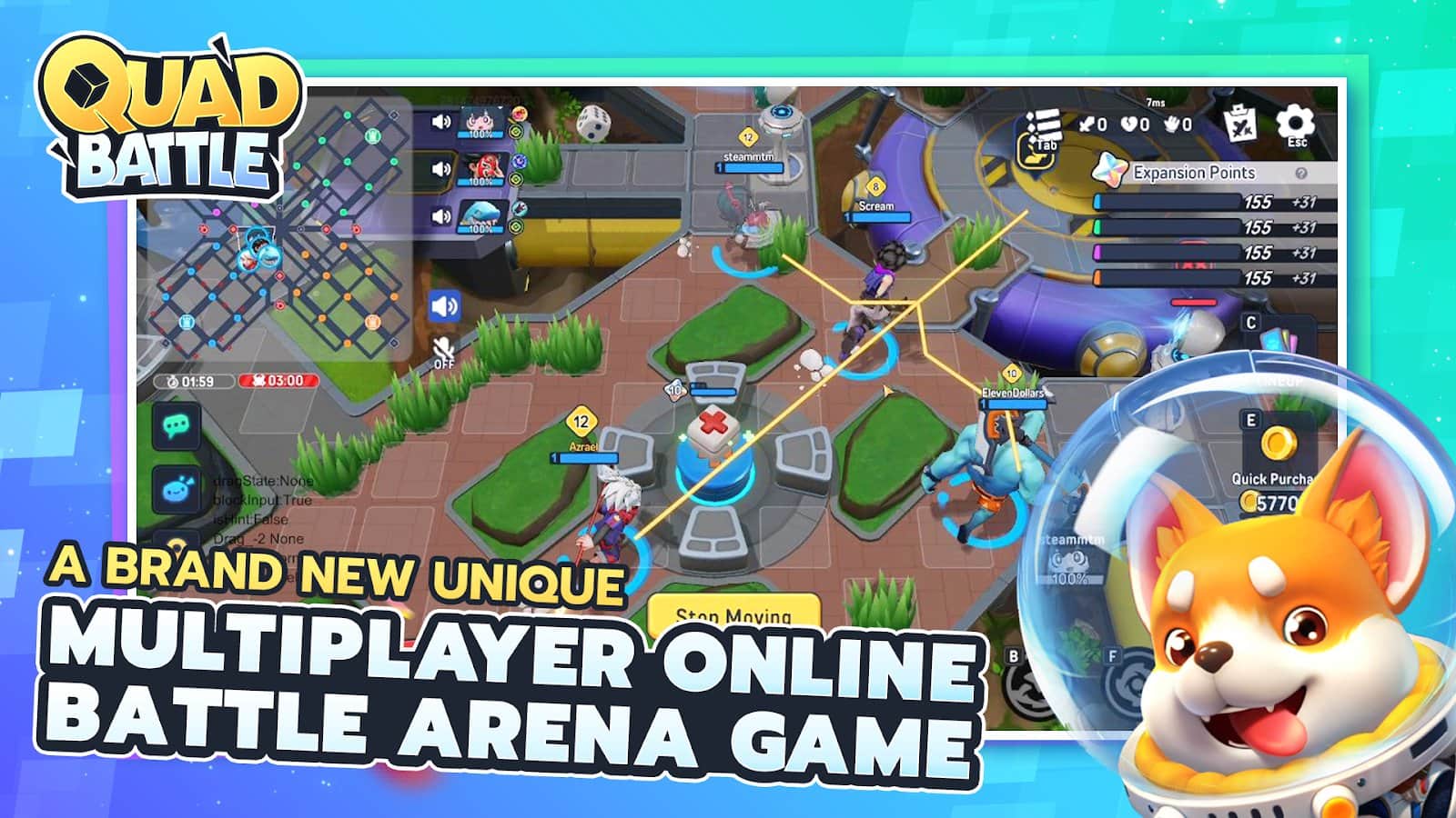 ¡Quad Battle es un emocionante y accesible juego MOBA donde 16 jugadores chocan en emocionantes batallas en una arena única! Esta innovadora arena de batalla multijugador ofrece un formato fresco donde 4 equipos compiten entre sí en un mapa dinámico basado en una cuadrícula. ¡Participa en batallas, captura posiciones y supera estratégicamente a tus oponentes en el camino hacia la victoria! El éxito depende únicamente de la estrategia, el trabajo en equipo y las habilidades. Tus posibilidades de ganar dependen de tu dominio de los héroes, la coordinación con tu equipo y la toma de decisiones tácticas inteligentes.