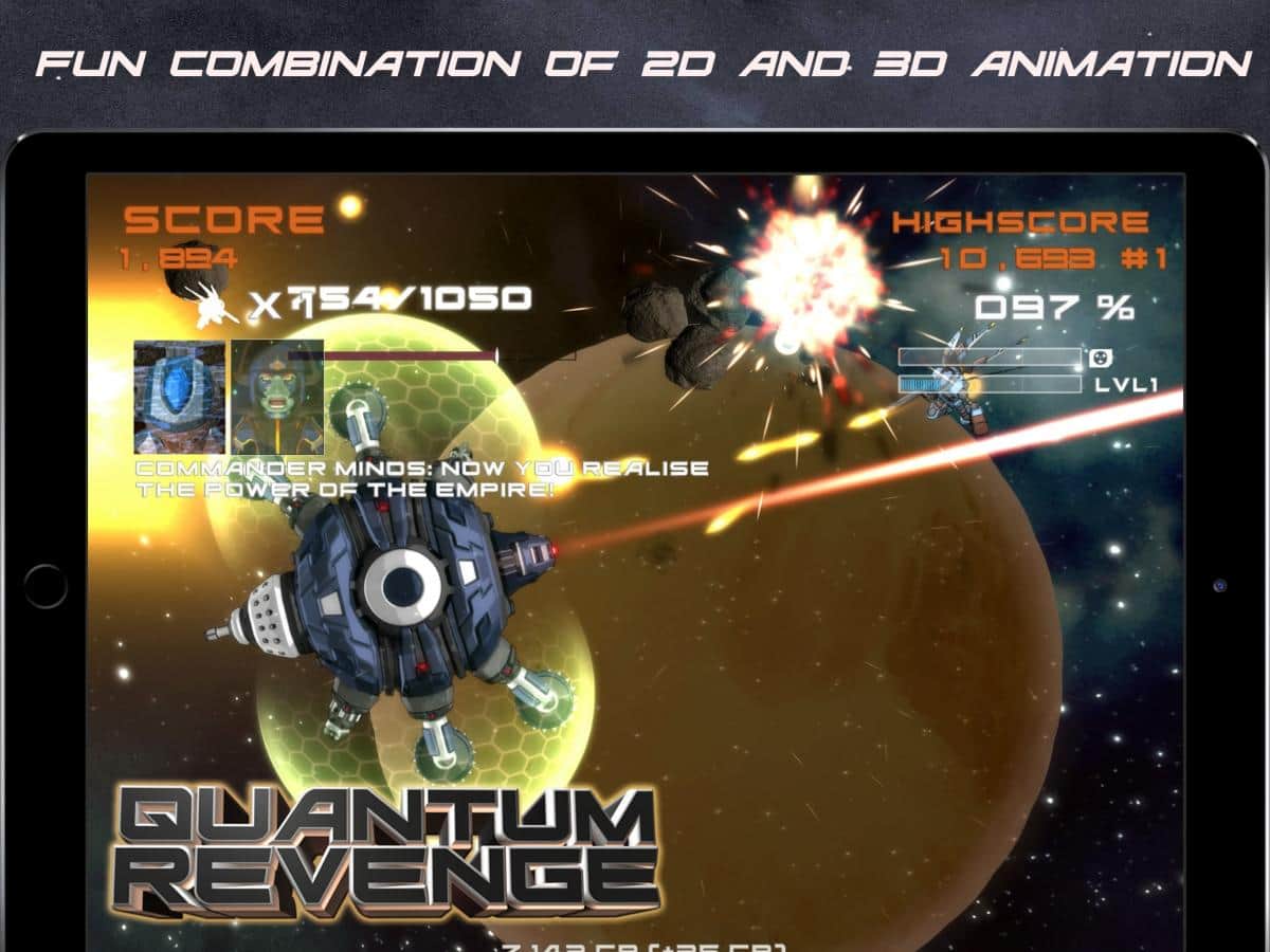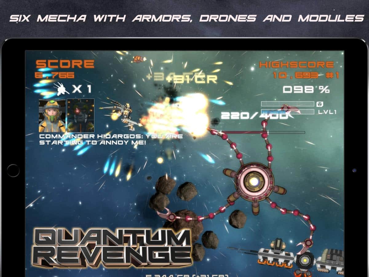 Quantum Revenge, un fantástico juego de acción para IOS donde viajarás por la galaxia y librarás guerra contra los alienígenas. Este juego te lleva a un futuro lejano, donde las personas comenzaron a colonizar planetas lejanos en el espacio y a producir recursos útiles. Después de un tiempo, su planeta comenzó a ser atacado por enemigos mecanizados externos y poderosos jefes. Las personas no tienen más opción que tomar las armas y repeler a todos los enemigos. Sigue todas las misiones asignadas y mejora tus naves a medida que avanza el juego, añadiendo armadura adicional, escudos, varios módulos y drones. Lucha contra poderosos jefes y disfruta de los excelentes gráficos y la música.