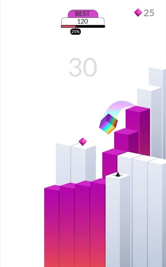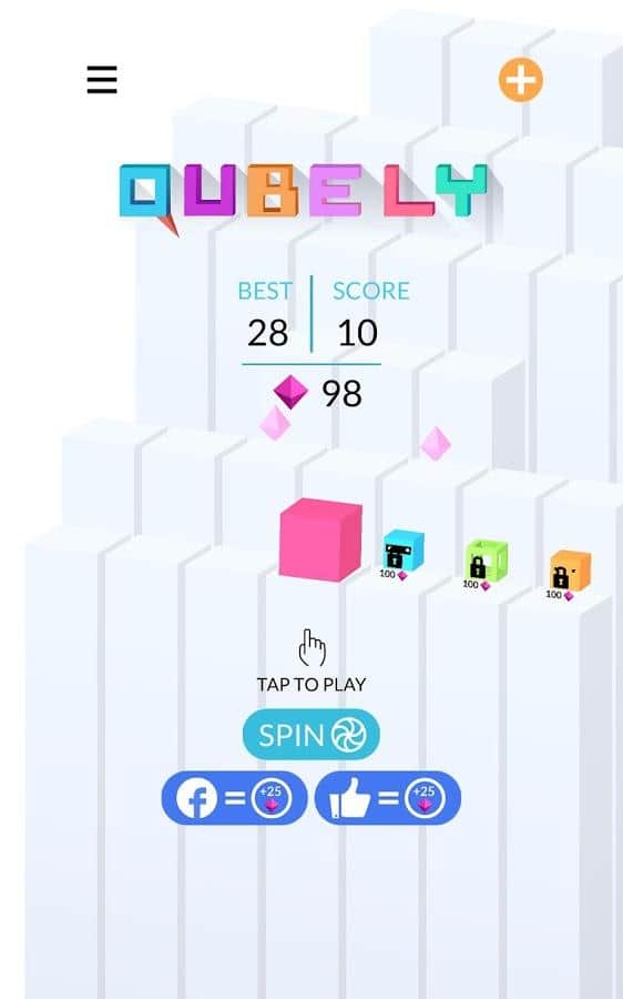 Qubely - Un juego simple y divertido donde tienes que controlar el movimiento del cubo. La esencia del juego es muy simple, el cubo se desliza por la torre, y debes guiarlo en la dirección correcta para que pueda saltar al siguiente bloque. El cubo no puede saltar sobre un bloque, así que ten cuidado. Además, aquellos bloques por los que ya ha pasado, se desmoronarán, ¡así que date prisa! También puedes recoger cristales que abrirán nuevos cubos.