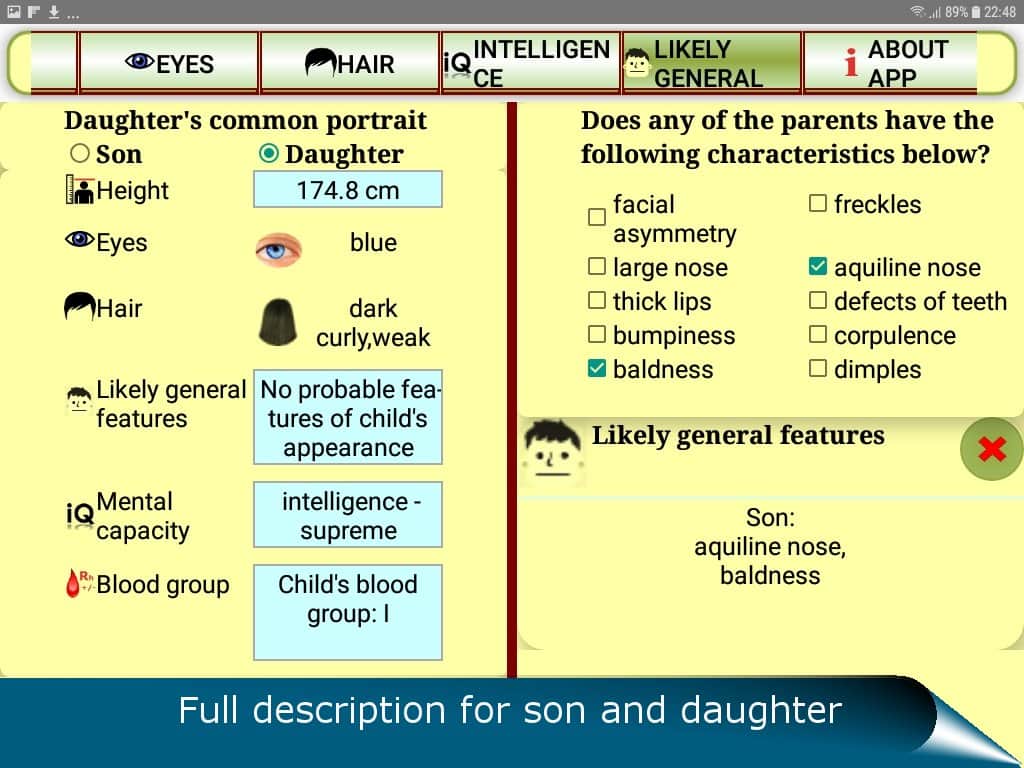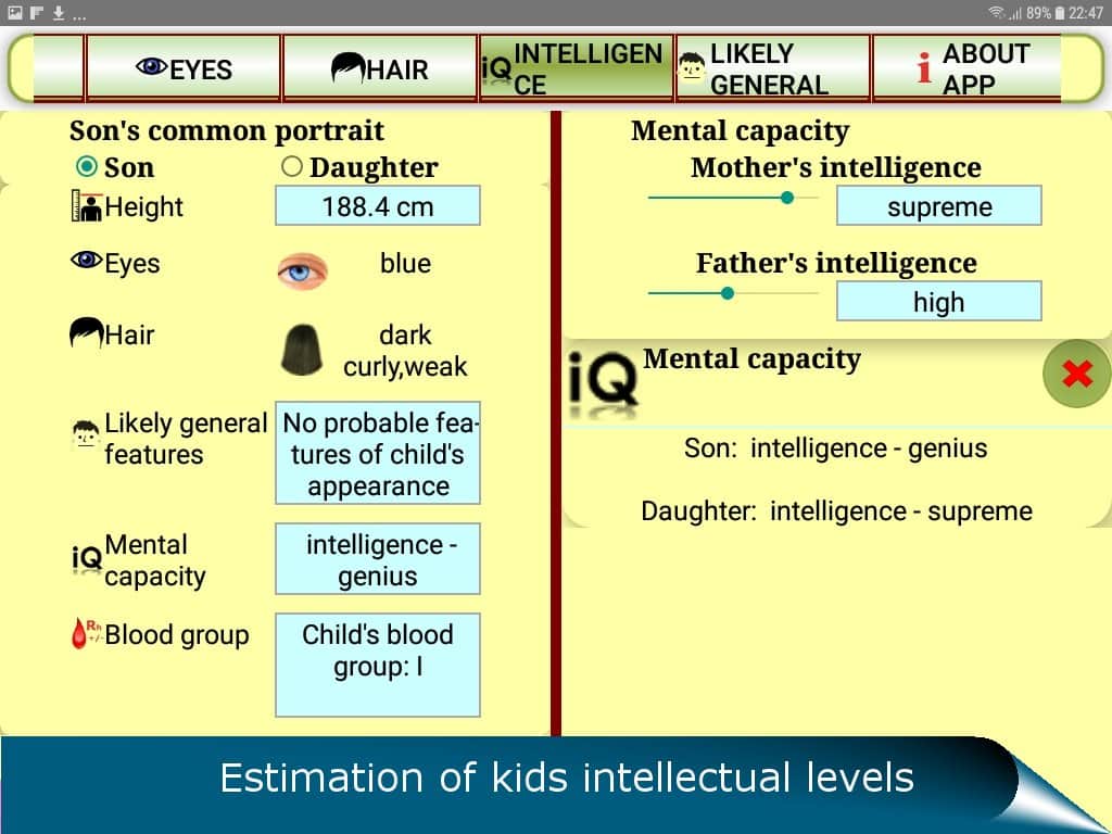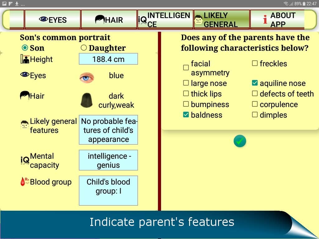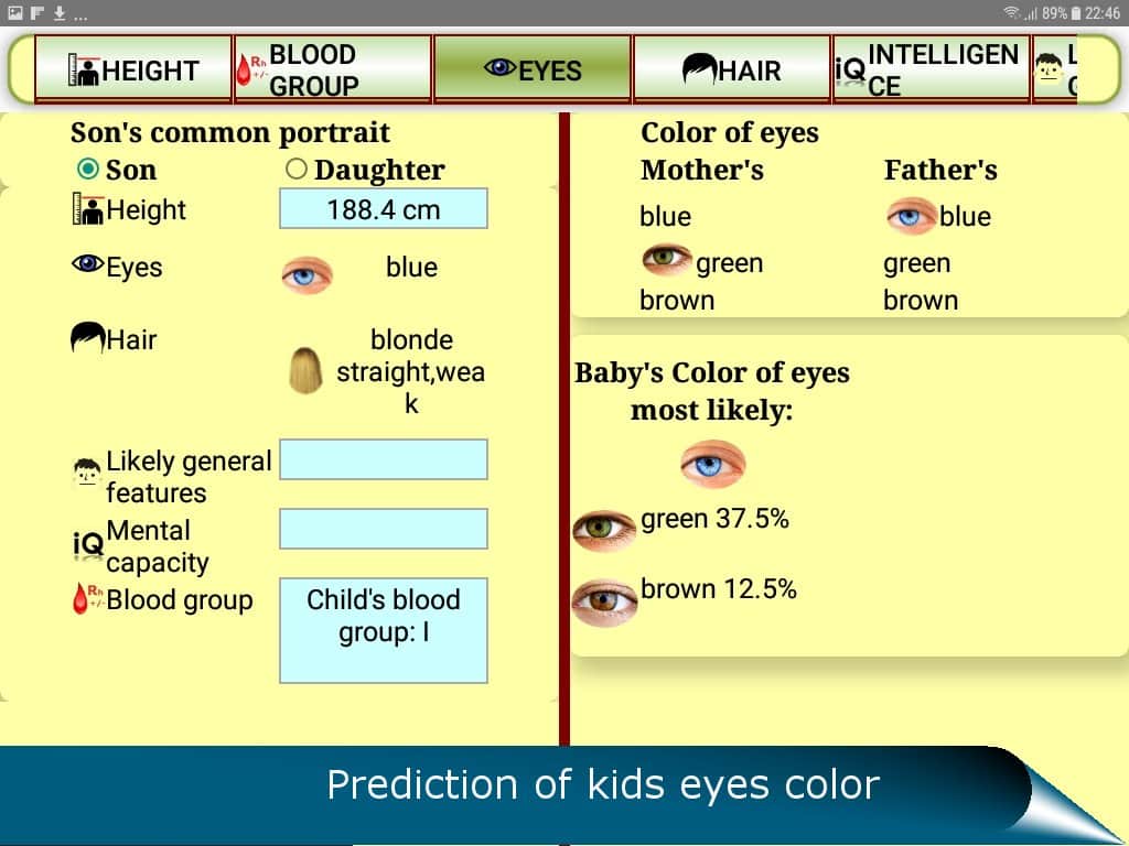 El pronóstico QUIS para el futuro del niño es la aplicación que atraerá a todos los padres expectantes curiosos. Por supuesto, cualquier pareja que espera un bebé se pierde en conjeturas: ¿quién heredará si el bebé tiene mi nariz? ¿Y el color de mis ojos? ¿O se parecerá más a nosotros o a los abuelos? Ahora no tienes que esperar nueve meses para conocer las respuestas a estas preguntas. Tienes la oportunidad de realizar un análisis genético de los genes dominantes y recesivos. Gracias a ello, descubrirás:
