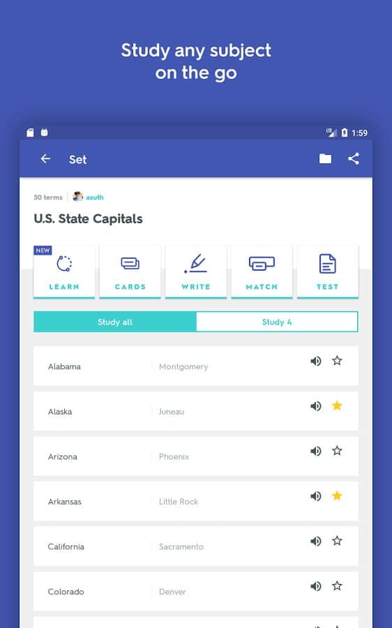 Aprender un idioma extranjero siempre es difícil, pero interesante. De una forma u otra, el vocabulario en este caso es, si no la clave, desempeña simplemente un papel significativo. Quizlet te ayudará a estudiar gramática, no se involucra en absoluto, está dirigida únicamente al aprendizaje y la consolidación de nuevas palabras, pero esta función se realiza de manera simple y fácil de usar: crear tarjetas temáticas.