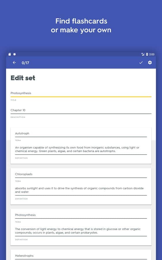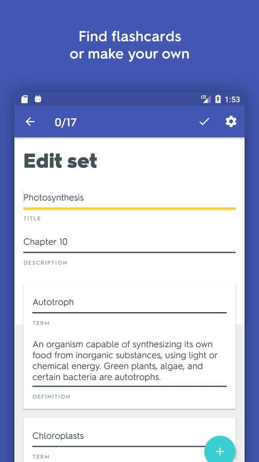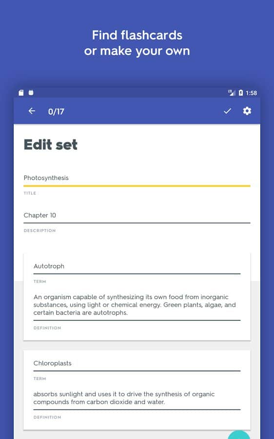 Comentarios a Quizlet en Android