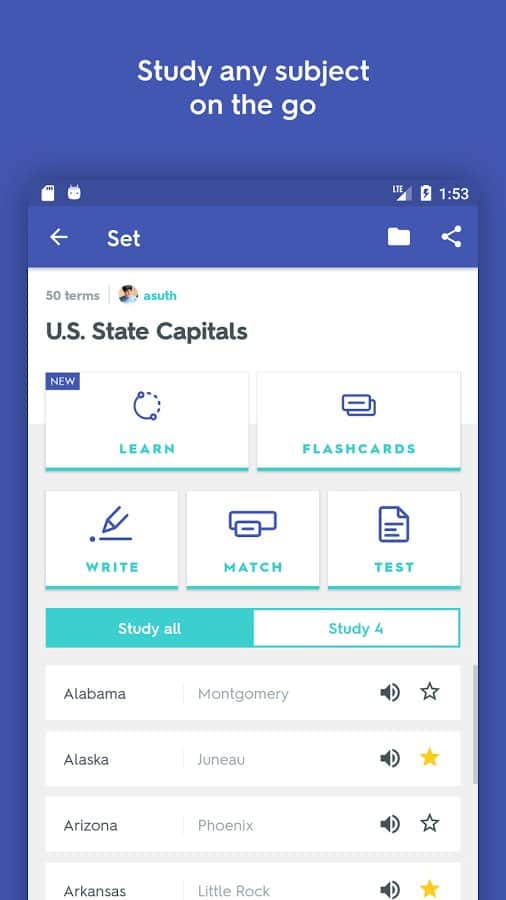 Las características clave están disponibles sin registro, que es la búsqueda de tarjetas listas para usar y practicar con ellas, pero si deseas crear tus propios conjuntos de palabras, aún se necesita registro. Puede vincular las imágenes correspondientes para la mayoría de los idiomas que proporciona el motor de idiomas, de modo que podrás memorizar no solo la ortografía de las palabras, sino también su pronunciación. Además de estudiar, hay un modo de prueba disponible.