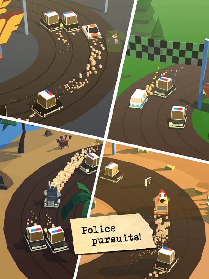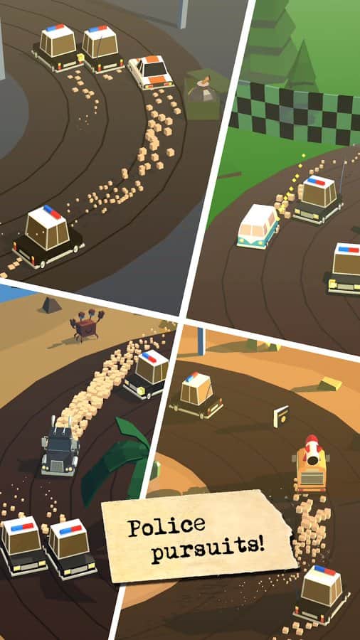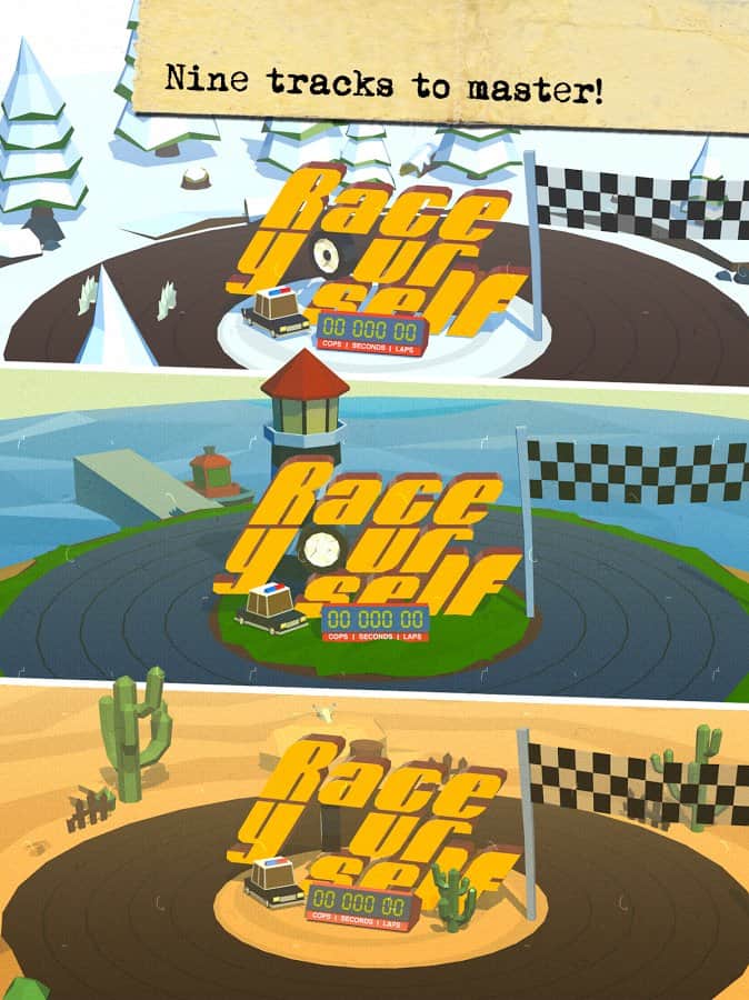 CARRERA Contigo mismo - carreras de arcade en Android donde tienes que conducir un coche que va en círculo. Ponte al volante de un coche y aceléralo hasta un límite de velocidad, conduciendo en círculos y evitando todos los obstáculos en su camino. La dificultad del juego radica en que en la carretera aparecerán coches de policía y obstáculos, evítalos todos y recoge numerosas monedas y bonificaciones, como cohetes. Intenta pasar la mayor cantidad de círculos posible en un corto periodo de tiempo, maniobrando entre los obstáculos que surgen. Con cada nuevo nivel, la complejidad del juego aumentará, y se agregarán más coches de policía.