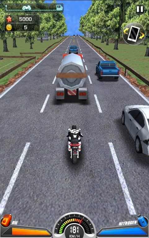 Racing Moto – carreras en Android, en las que te sumergirás en el mundo de altas velocidades y potentes motocicletas. Controla la motocicleta que acelera a gran velocidad por pistas llenas de diversos vehículos, evitando todos los obstáculos en tu camino. En el camino, recoge monedas doradas y útiles bonificaciones que encontrarás en la carretera, así como completa diversas misiones y tareas. Intenta llegar a la meta en el menor tiempo posible y descubre nuevas motocicletas más potentes, con la posibilidad de mejorar sus características. Un juego con diversas pistas y motocicletas, así como con tráfico infinito.