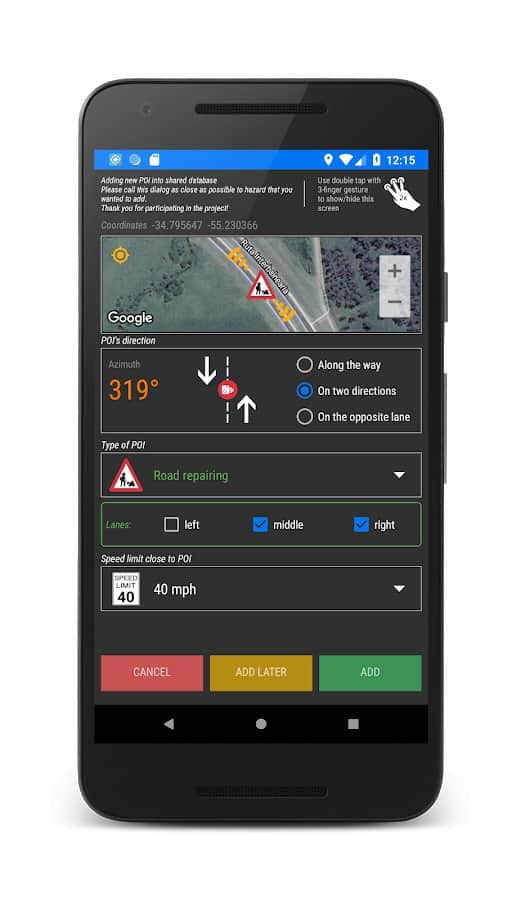 Detector de radar (radar detector) - una gran aplicación para tu dispositivo android para detectar radares de velocidad en la carretera (emboscada móvil, cámaras estáticas, cámaras en semáforos), topes, carreteras en mal estado y otros peligros. Características: