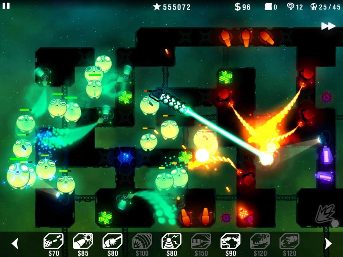 Defensa Radiante - la estrategia brillante y colorida en estilo Tower Defense. Tu tarea es construir una fortaleza espacial, fortalecerla y colocar trampas y armas poderosas en posiciones clave, ¡para que ningún extraño se filtrara! Disfruta de 12 misiones, más de 300 oleadas de ataques, 9 tipos de armas con mejoras y 3 tipos de armas de destrucción masiva. ¡Comparte tu progreso en la tabla de líderes y apunta al primer lugar!