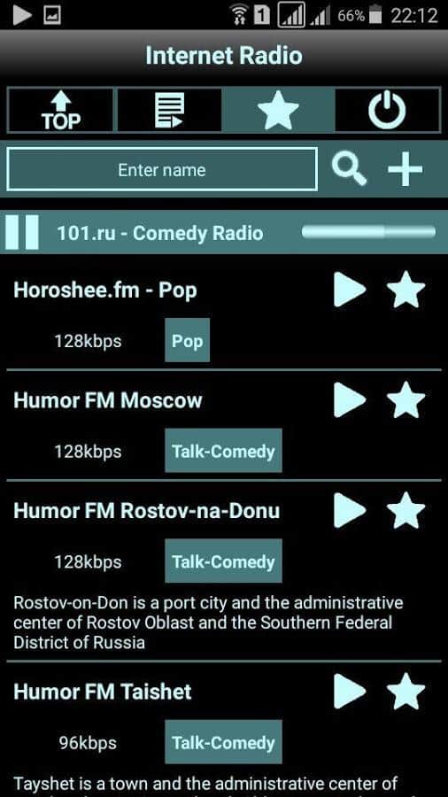 Radio Online es una aplicación que te permite sintonizar cualquier onda rusa o extranjera, disfrutando de tus éxitos favoritos y novedades musicales. El programa ha recopilado más de mil estaciones de radio de todo el mundo, para escuchar de forma absolutamente gratuita. Características: