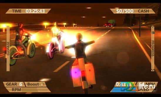 Rage on Wheels es un conjunto completo de la serie uno para Windows Phone. Una especie de mezcla entre corredor, carreras, supervivencia y otros elementos de diferentes juegos. De hecho, participas en carreras de arrastre, tratando de no chocar con varios obstáculos, mientras recolectas todas las rutas útiles. En cuanto a llevar ideas a la vida, aquí es para los fanáticos. La gráfica no brilla especialmente, aunque el juego no se ve muy afectado. El juego tiene 5 modos, desde arcade hasta misiones, pero en general son similares, solo se diferencian en el control. Aún hay un cierto elemento de brutalidad: puedes empujar y empujar a los oponentes en la carretera. Pero si no quieres ensuciarte las manos, entonces tienes el boomerang y la aceleración en su lugar!