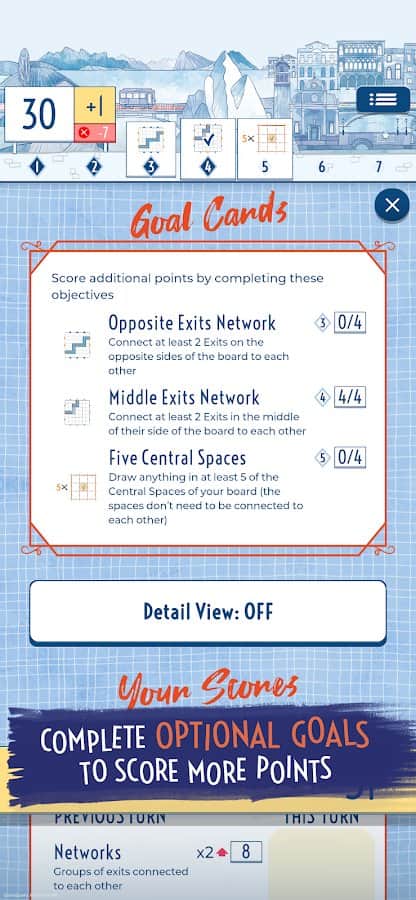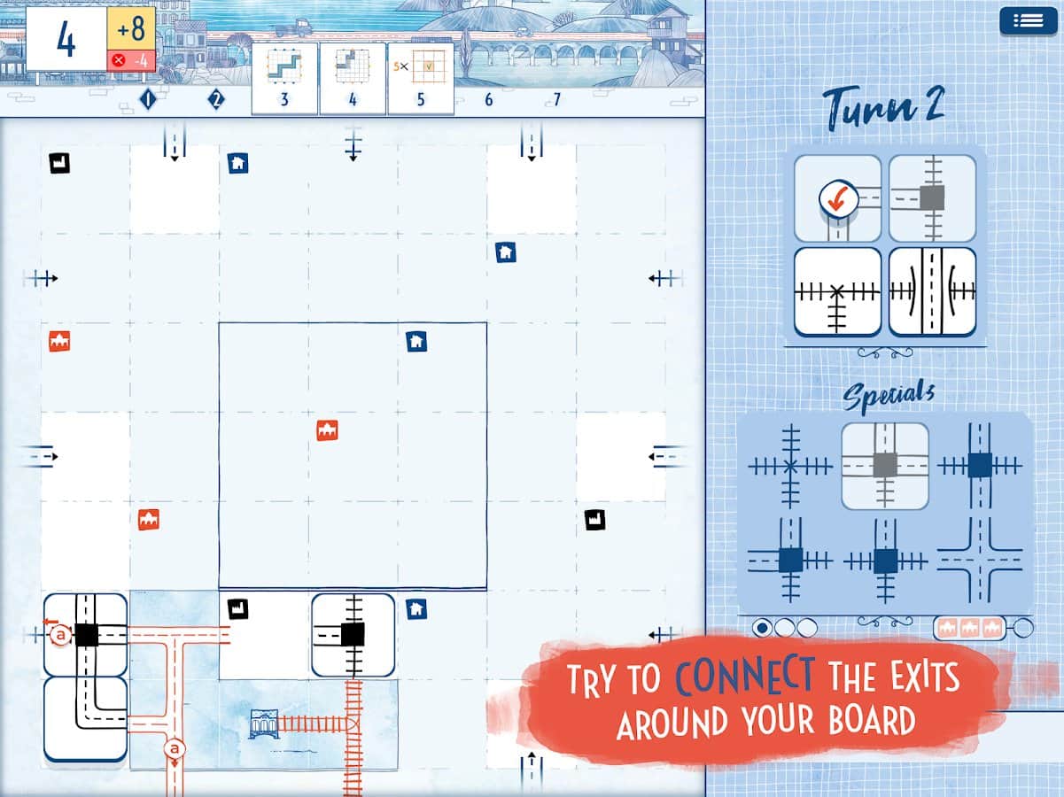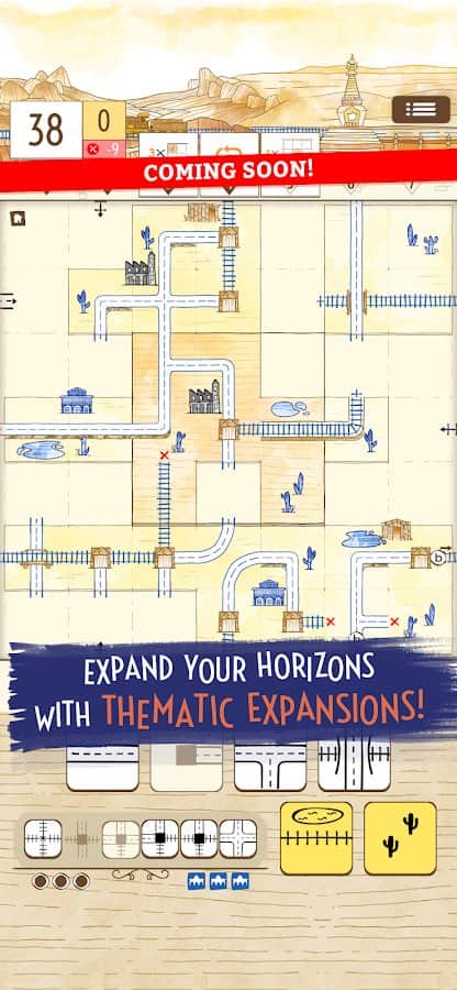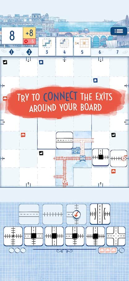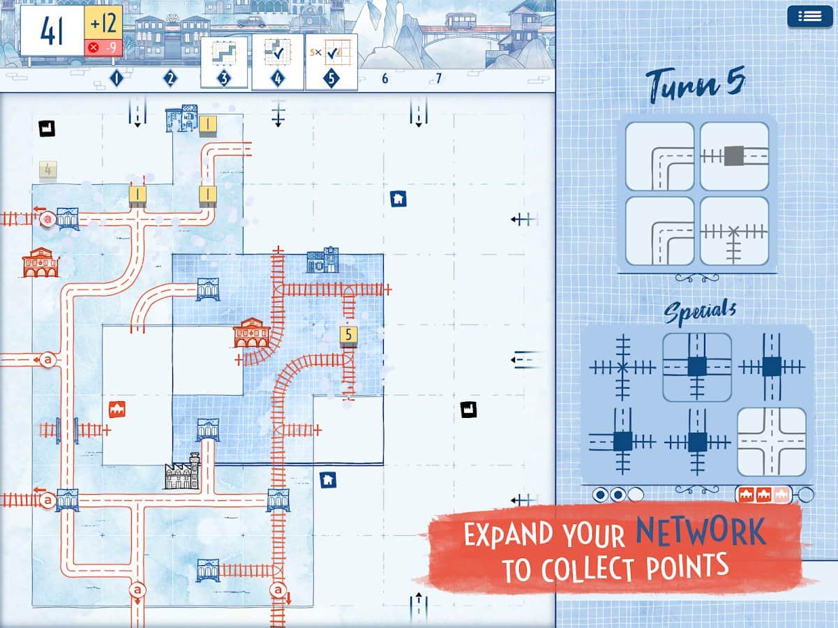 En el Reto de Railroad Ink, tienes 7 rondas para conseguir la mayor cantidad de puntos posible. Lanza los dados y dibuja rutas que conecten las salidas alrededor de tu tablero. Expande tu red con ferrocarriles, carreteras y estaciones para puntuar, pero serás penalizado por cualquier conexión abierta, así que planifica cuidadosamente. En cada ronda, tendrás que lanzar los dados y usar las rutas disponibles para construir tu red de transporte y conectar tantas salidas como sea posible. Expande tu red para puntuar. También ganarás puntos extra por tener la carretera y el ferrocarril más largos, por construir en las áreas centrales del mapa, y por completar objetivos opcionales basados en el tiempo antes de que expiren. Juega en solitario con objetivos aleatorios y únete a las tablas de clasificación en línea o desafía a jugadores de todo el mundo con configuraciones de juego personalizables.