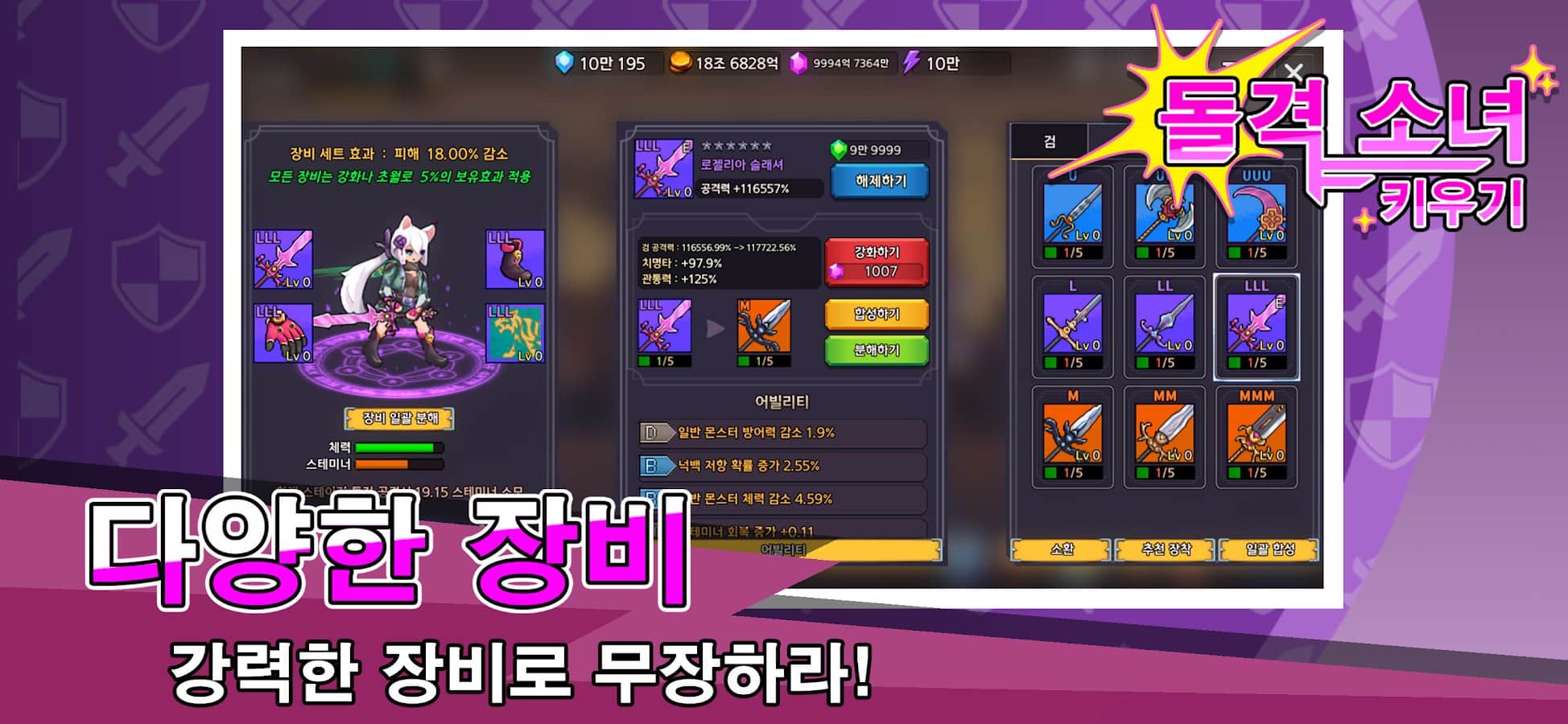 Raising Assault girl - ¡Una nueva experiencia de RPG de negligencia! - es un juego RPG inactivo que ofrece una nueva experiencia de juego en este género. Al desarrollarte a través de varias actividades en el juego, debes convertirte en la mejor chica de asalto en este mundo. Equípala con una variedad de armaduras, armas y otros objetos que aumentarán tu nivel y fuerza. Participa en incursiones de jefes con otros jugadores y derrotalos. A medida que mejores cada vez más, ¡puedes convertirte en el guerrero más fuerte en esta dimensión!