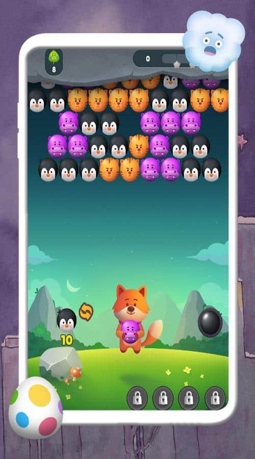 Rakun Faruk – un juego en Android donde ayudarás al mapache a explotar globos. En este juego, tu tarea principal es disparar bolas en la parte superior de la pantalla y hacer filas. Avanza a través de niveles divertidos y trata de explotar todos los globos. En cada nuevo nivel, el juego te dará nuevos rostros y grandes bonificaciones que podrás aplicar en el caso. Juega este juego en cualquier momento libre y disfruta de los hermosos visuales y los nuevos niveles únicos.
