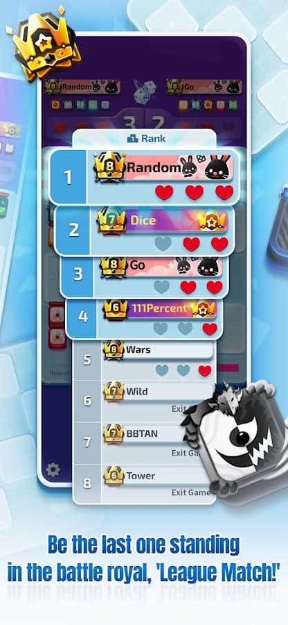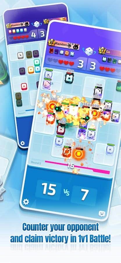 Dados Aleatorios: ¡VAMOS! - cada movimiento importa y afecta directamente a todo el juego. Necesitas crear tácticas únicas para derrotar al enemigo colocando los dados correctos en el tablero del campo de juego. El juego tiene muchos tipos de dados con habilidades y características individuales. Algunos de ellos, por ejemplo, solo pueden atacar a oponentes cercanos, pero los subes de nivel mucho, mientras que otros dados pueden atacar objetivos a gran distancia, pero el daño será pequeño. El juego tiene varios modos de juego, incluido un modo básico de batalla 1 contra 1 y un partido de liga que involucra hasta 8 jugadores.
