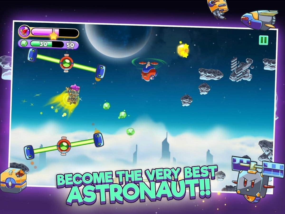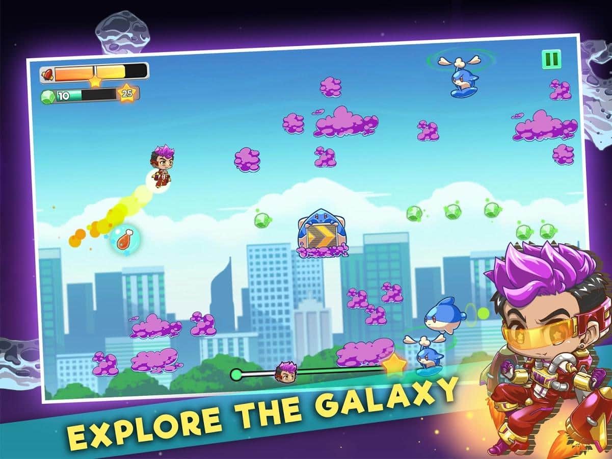 Rapstronaut: Viaje Espacial - corredor horizontal clásico con elementos de plataformas de acción basado en personajes que formaron héroes de cómics populares. La mecánica del juego es bastante simple, con toques y deslizamientos tu tarea es controlar a los héroes, destruyendo así a los enemigos que se acercan y recolectando varios premios, incluyendo mejoras y bonificaciones. Se debe prestar especial atención al diseño gráfico, los gráficos coloridos y la animación vívida combinados con la dinámica del juego dan a la partida la atmósfera tan querida por los fans del género. No olvides a los creadores del juego y los diversos elementos de throughput, que darán a Rapstronaut: Viaje Espacial originalidad, y a ti un incentivo para continuar el juego. Por supuesto, también hay la oportunidad de comparar tus logros con los récords de otros jugadores.