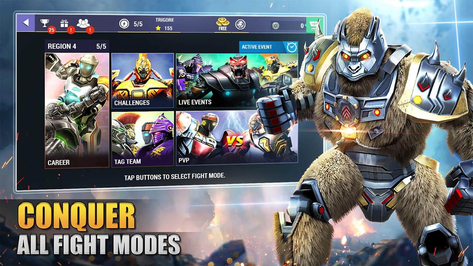 Real Steel Boxing Champions es una secuela del famoso juego de lucha Real Steel basado en las películas "Real Steel". En esta parte, al principio se te ofrece el llamado esqueleto del robot, al que podrás añadir cualquier elemento a tu gusto. Mejora y perfecciona tu creación con amplias posibilidades de personalización. ¡Comienza tu camino desde abajo y guía al robot hacia el campeón más famoso de la Liga de robots de combate!