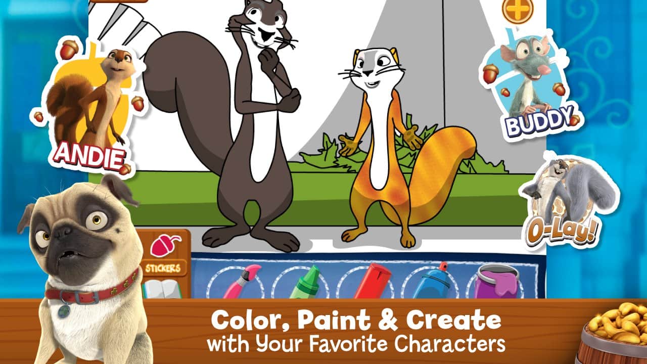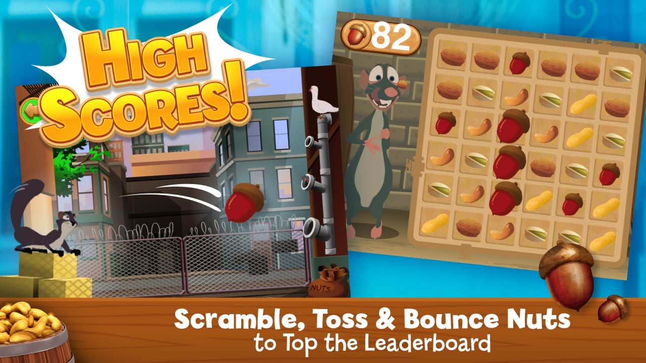 Juego real de ardilla / El Trabajo de Nueces para Android, basado en el cartoon homónimo sobre Curly y su pandilla. Embarca en una peligrosa aventura en el centro de la ciudad, donde encontrarás una tienda de nueces. Debes lanzar nueces en varios tubos de agua y ganar puntos.