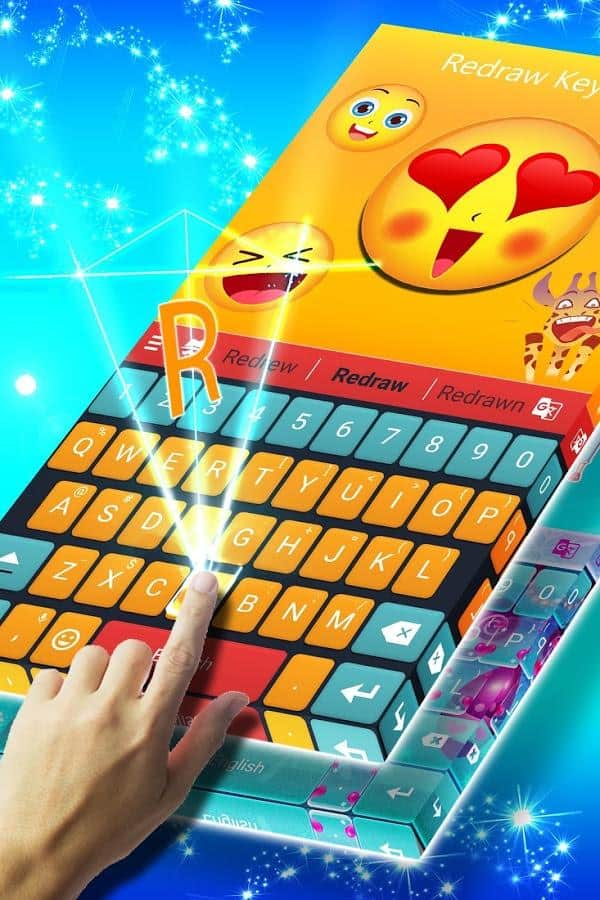 Redibuja el teclado de emoji y temas - Teclado colorido que contiene un montón de diferentes elementos. Además, puedes personalizar el color de todo el teclado, utilizando un color estándar, o incluso una paleta de colores. Botones convenientemente ubicados, así como muchas otras características útiles.