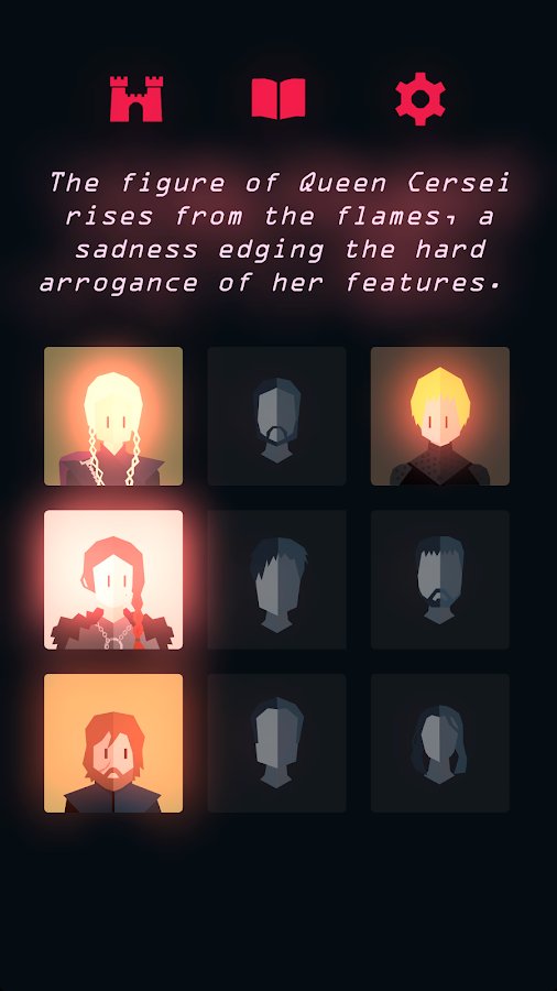 Reigns: Juego de Tronos – un juego creado basado en la famosa serie de televisión "Juego de Tronos". En este juego tendrás que resolver escuchando las profecías de la sacerdotisa Melisandre, quien tomará el trono de hierro. Ponlo en el trono, Cersei Lannister, Jon Snow, Daenerys Targaryen o Sansa Stark, y tal vez alguien más. En este juego te sumergirás en el mundo del Reino y navegarás por las complejas intrigas y maquinaciones entre reinos rivales. Toma tus decisiones y confía en tu compostura y astucia para derrotar a los oponentes y izar tu estandarte sobre el mundo. Toma decisiones sobre quién tendrá tus efectos y crea tu propia historia.