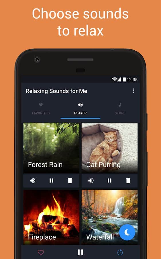 Para mí, Sonidos Relajantes / sonidos relajantes para mí - La mayoría de nosotros vivimos bajo constante estrés, y ¿qué hacen las personas que están constantemente nerviosas? Necesitas relajarte adecuadamente y esta aplicación te ayudará con esto. Contiene un conjunto de sonidos relajantes que no solo se complementan entre sí, sino que están grabados con la máxima precisión. Solo necesitas recordar que te relaja, ya sea el tintineo de la lluvia o el ruido del fuego. Al crear un conjunto de melodías, podrás sentir una atmósfera inusual y relajarte.