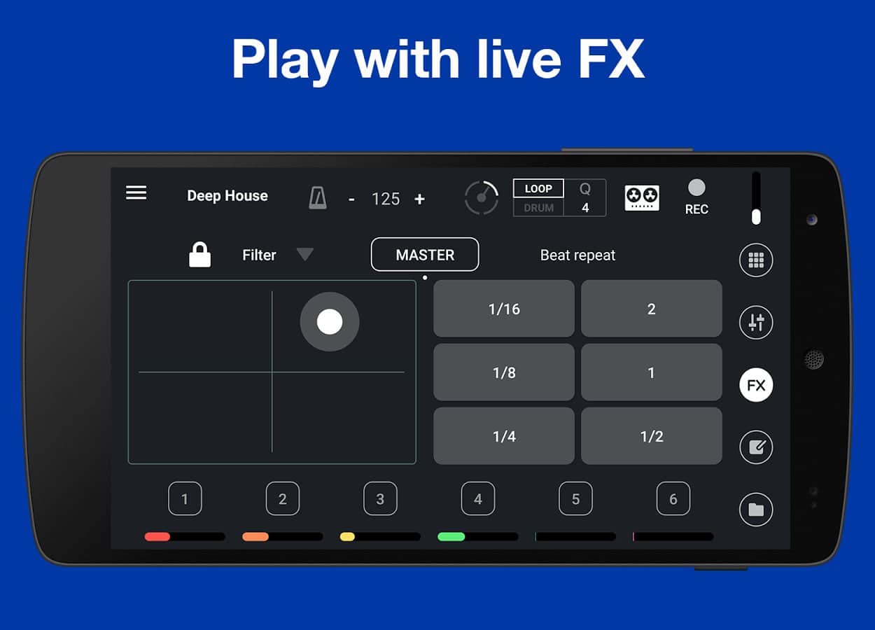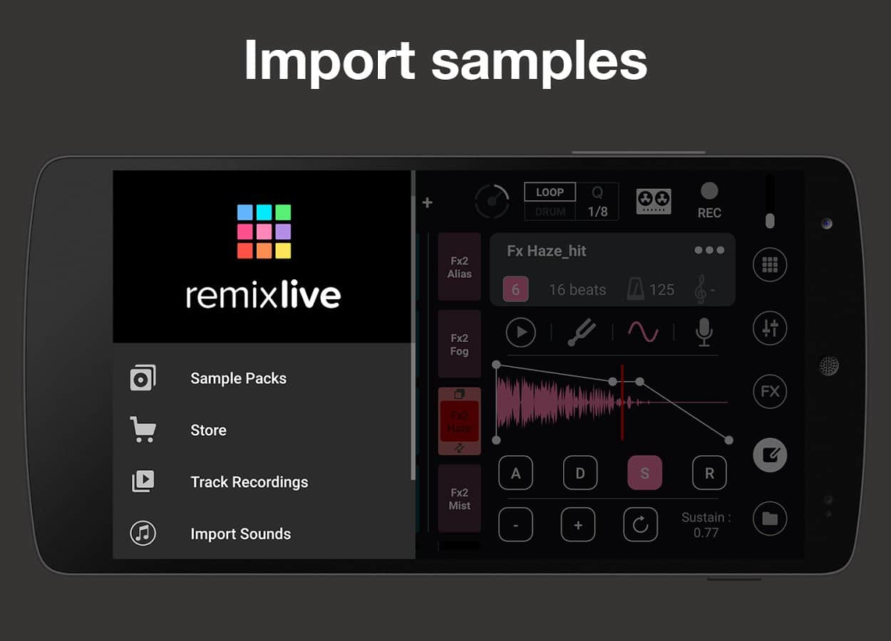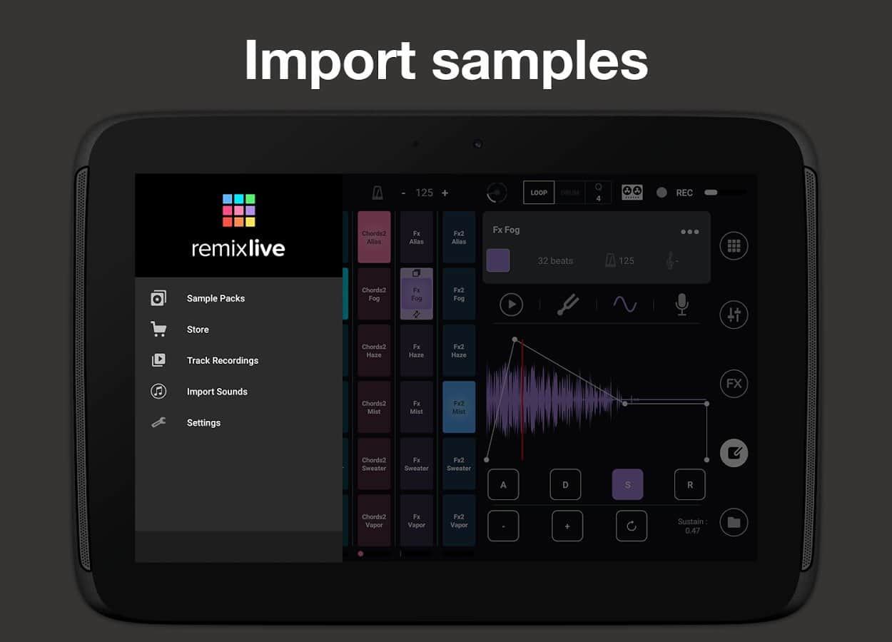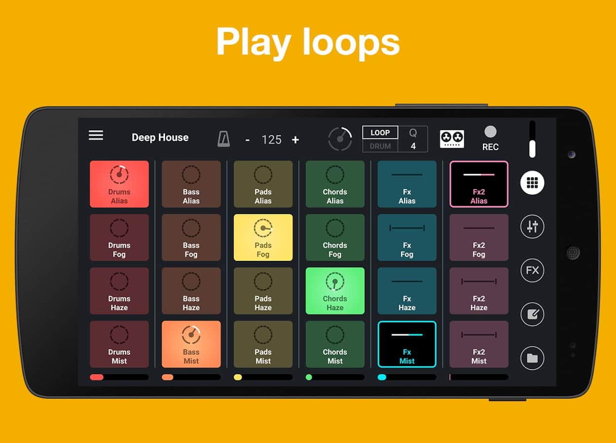 Remixlive - batería y reproducción de loops - ¿Siempre has querido aprender a mezclar como un verdadero DJ? ¡Ahora tu sueño puede hacerse realidad! Con esta aplicación podrás crear una variedad de melodías en su arsenal, una gran cantidad de diferentes sonidos y música. La gestión aquí es muy sencilla, todos los archivos de audio están divididos en categorías y encontrar el que necesitas no es difícil, ya que el sonido se puede ajustar manualmente cambiando el timbre o la intensidad de ciertos sonidos.
