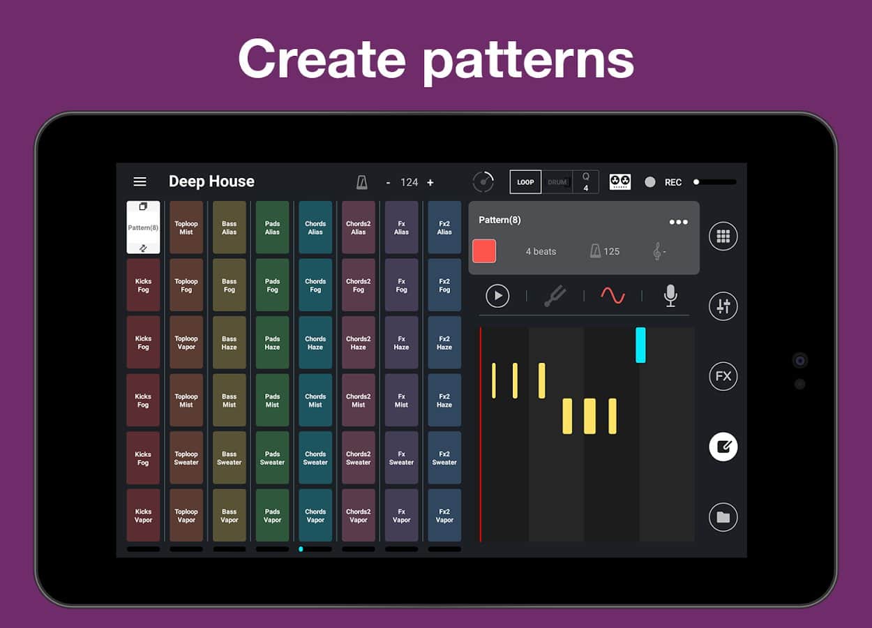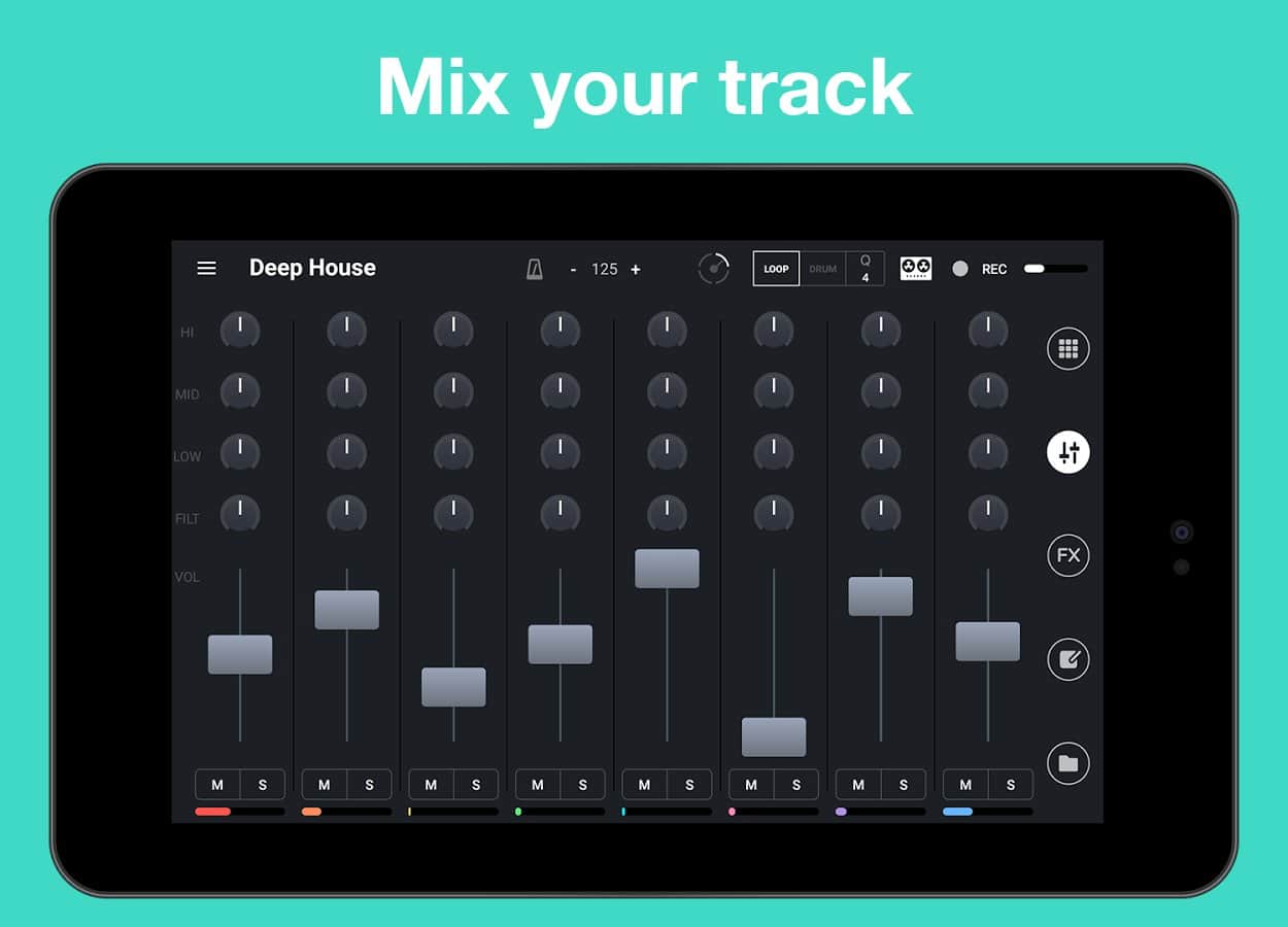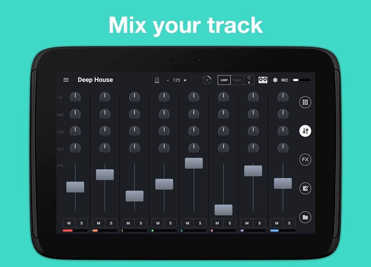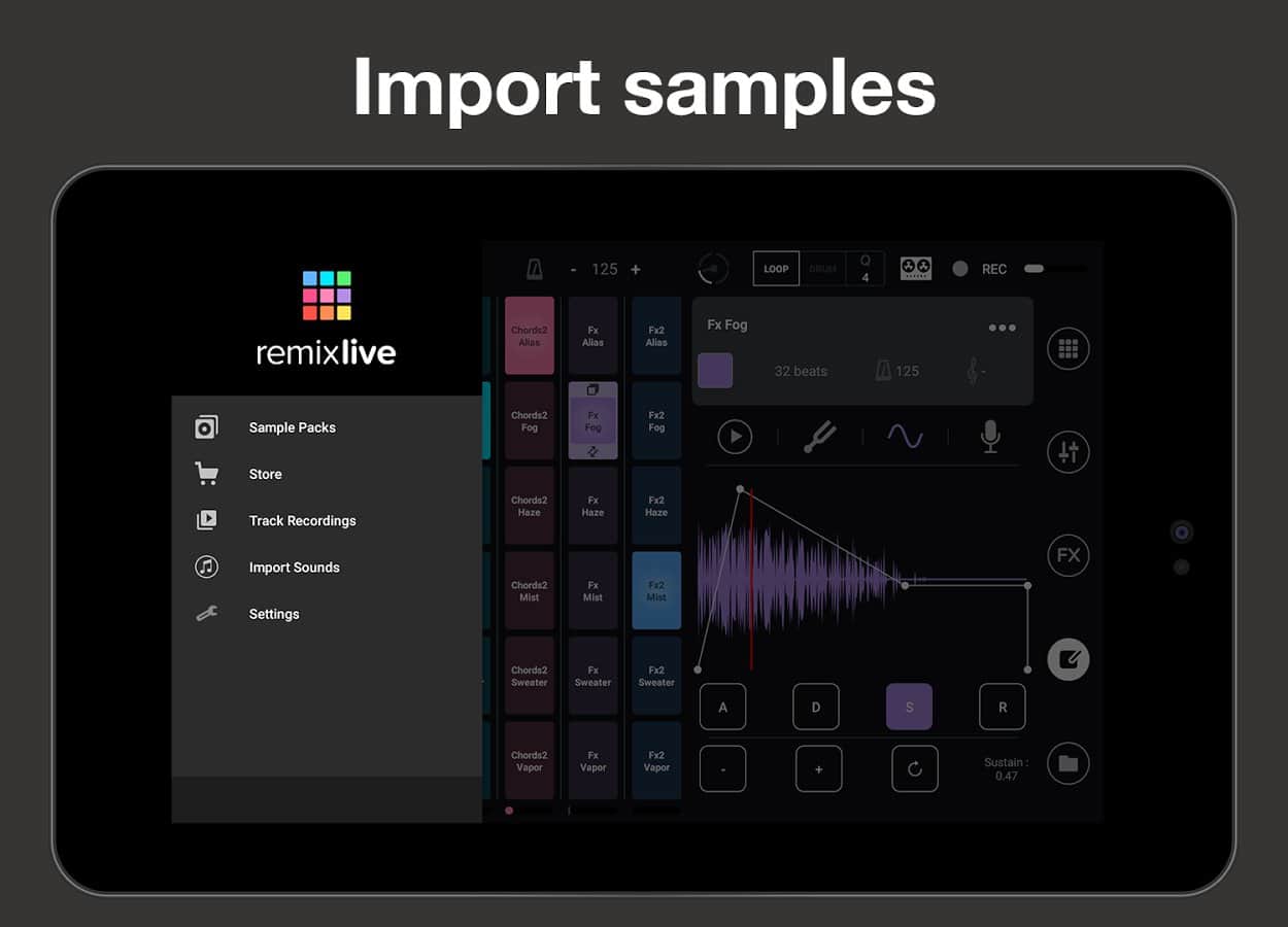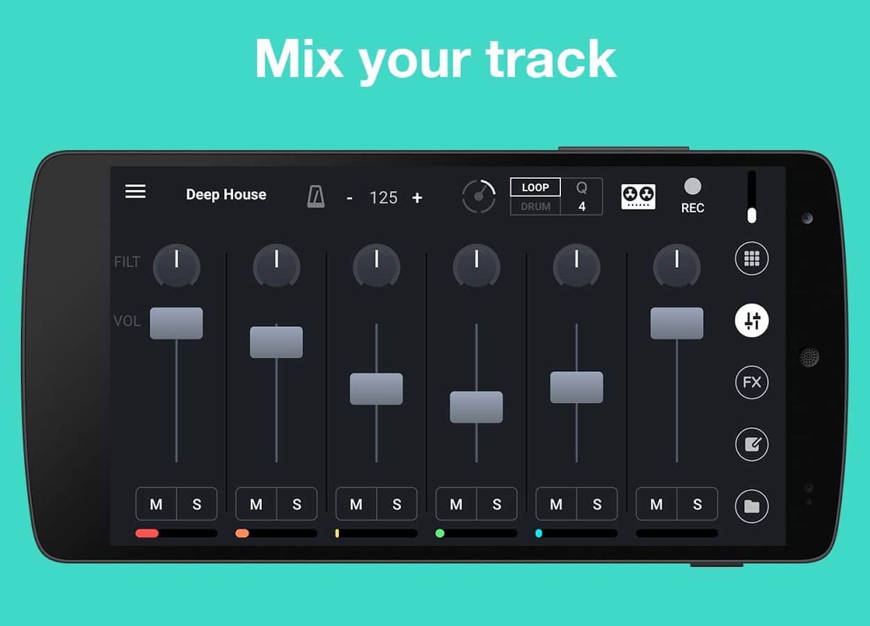 Remixlive - batería y reproducción de loops - ¿Siempre has querido aprender a mezclar como un verdadero DJ? ¡Ahora tu sueño puede hacerse realidad! Con esta aplicación podrás crear una variedad de melodías en su arsenal, una gran cantidad de diferentes sonidos y música. La gestión aquí es muy sencilla, todos los archivos de audio están divididos en categorías y encontrar el que necesitas no es difícil, ya que el sonido se puede ajustar manualmente cambiando el timbre o la intensidad de ciertos sonidos.