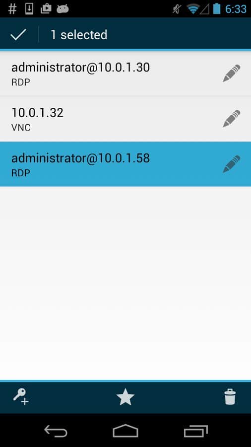 el programa Cliente de Escritorio Remoto en el dispositivo Android, que te ayudará a obtener control total sobre la computadora o servidor que se ejecuta en Windows OS, Mac OS y Linux al utilizar el teclado y el mouse de control remoto a través de RDP por Internet. El Cliente de Escritorio Remoto permite configurar la resolución de pantalla deseada, una conexión segura a través de SSL/TLS para la autenticación a nivel de red. Soporta completamente el teclado en pantalla, audio y micrófono, así como archivos en la computadora remota. Tiene soporte para teclado y mouse físicos conectados a través de USB o Bluetooth. La pantalla mostrará todo lo que se puede ver en un monitor convencional, que está conectado a una PC o servidor. Para conexiones lentas se proporciona compresión y almacenamiento en caché de conexiones RDP.