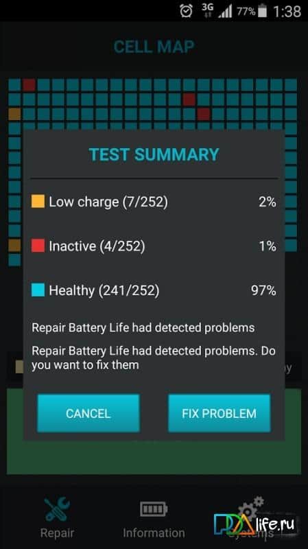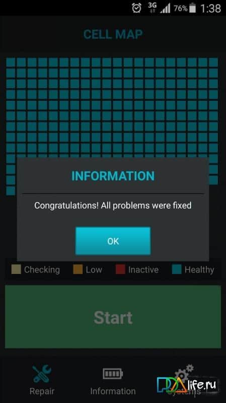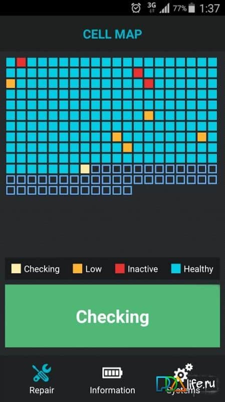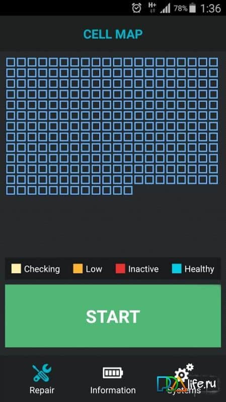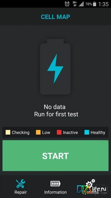 Reparar Batería - Cualquier técnica con el tiempo se desgasta. Esta aplicación te ayudará a mantener tu batería viva y en buen estado el mayor tiempo posible. Muchos han tenido el problema de que la batería se descarga muy rápidamente en un solo día. Así que esta aplicación no solo tiene como objetivo salvar tu batería, sino probarla y mantenerla en condiciones de funcionamiento. Con horas convenientes, divididas en celdas, mostrará el estado de funcionamiento de tu batería, así como también mostrará la temperatura, el voltaje y muchos otros datos.