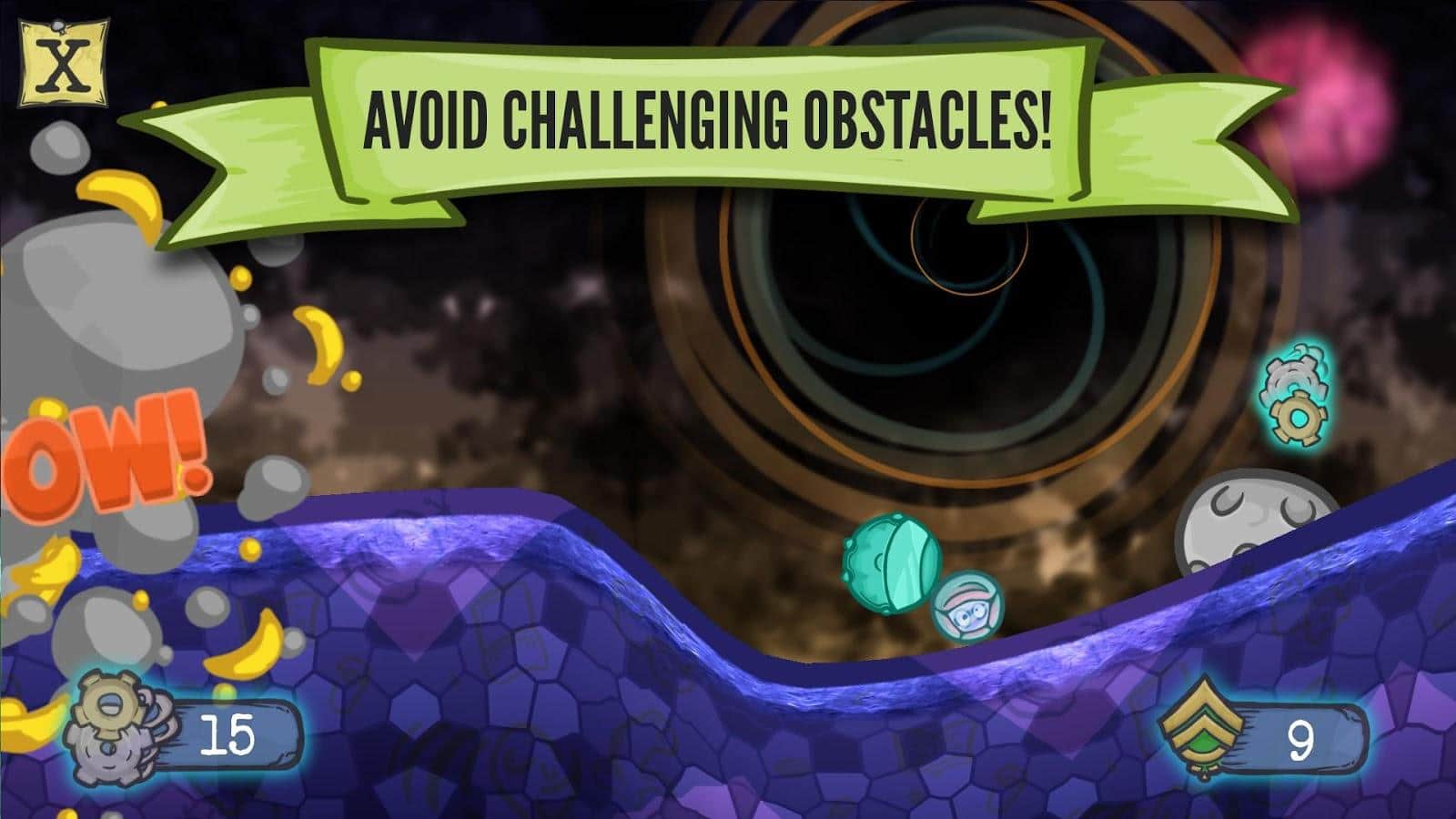 La jugabilidad es la siguiente, usando el deslizamiento necesitas controlar al astronauta, recopilando todo lo necesario de la superficie del planeta, en el camino te encontrarás con no pocas dificultades en forma de trampas, agujeros negros y enemigos. Jugabilidad extremadamente adictiva y muy difícil, grandes gráficos que sin duda complacerán a todos los fanáticos del género.