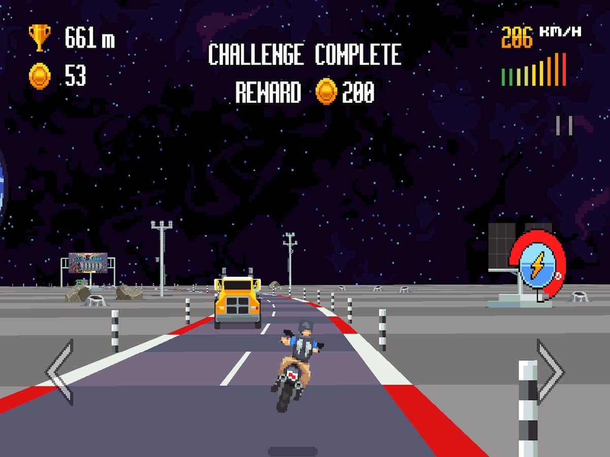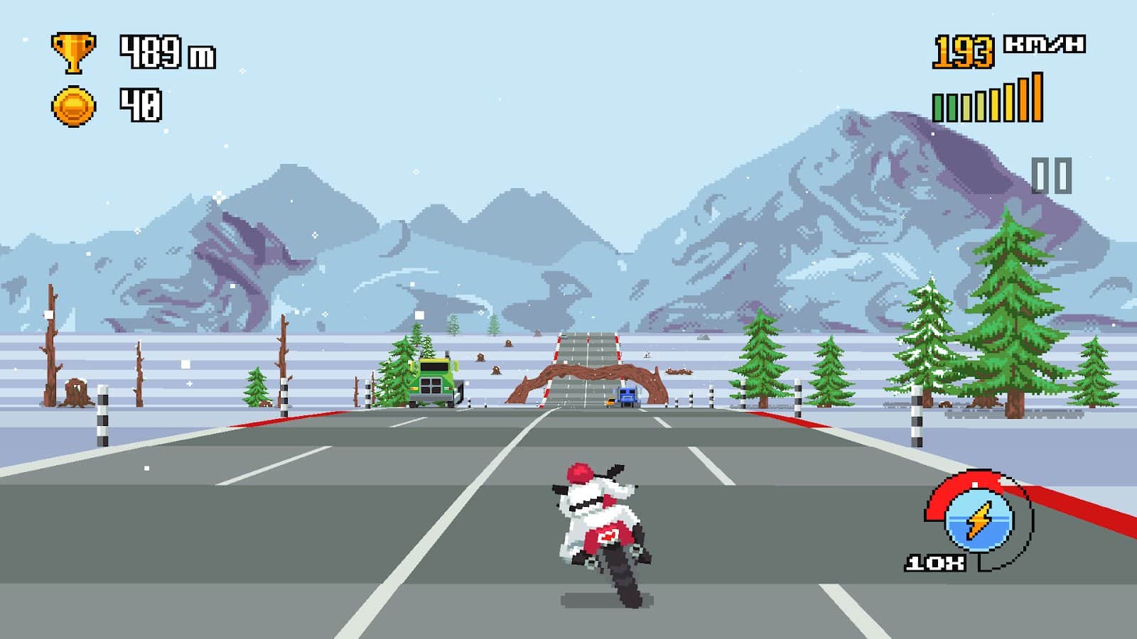 Retro Highway - juego clásico de píxeles en primera persona donde debes manejar una motocicleta para intentar superar la mayor distancia posible, evitando así colisiones con otros usuarios de la carretera. El dinero y la experiencia que obtendrás te permitirán comprar nuevos tipos de equipo o mejorar los existentes. Además, el juego está dividido en varias docenas de niveles que se desbloquean a medida que avanzas. La parte gráfica del juego está hecha en un bonito estilo de píxel y la oficina es un modelo casual.