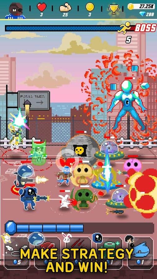 Retro Rangers - juego de arcade de disparos de píxeles con elementos de estrategia donde tienes que reunir bajo tu mando a un equipo completo de Rangers que tienen habilidades únicas. Sin embargo, el cuidado de estos pacientes requerirá paciencia y habilidades. Pero vale la pena porque al pasar la historia, al final tendrás que salvar el mundo. Esta combinación no te permitirá despegarte ni un minuto y al comenzar el juego dedicarás todo tu tiempo a la jugabilidad.
