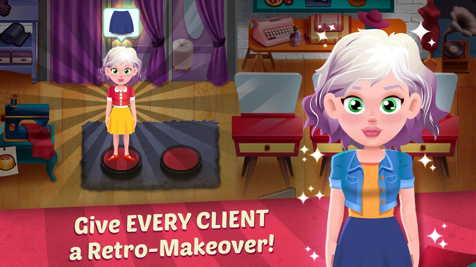 Retro Style Dash - Juego Simulador de Tienda de Moda – conduce tu propia tienda de ropa vintage y viste a las compradoras con una variedad de atuendos. Muestra todas tus habilidades de estilo y buen gusto y lleva a cabo varias misiones del juego. Atención a las mujeres que vienen a tu tienda y vístelas con atuendos de diferentes estilos desde los años 50 hasta los 90. Combina y combina faldas, blusas, pantalones y otros accesorios de moda y conquista los corazones de tus visitantes con estos atuendos. Expande tu tienda y compra nueva ropa.