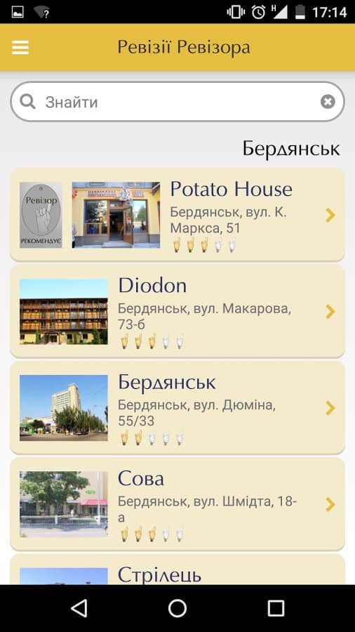 Revson - ¿Quieres saber a dónde puedes ir en tu ciudad, que no estaría envenenado? ¡Los mejores casinos en línea, probados por el equipo de auditoría del programa, ya están en línea! La aplicación acaba de salir, y no todas las versiones todavía están cargadas. Sin embargo, se actualiza constantemente, y en un futuro cercano será posible realizar y cargar su propia revisión. Además, vale la pena mencionar que la aplicación ocupa casi ningún espacio, y con ella podrás ver ediciones en línea. ¡Simplemente ahorra mucho espacio!