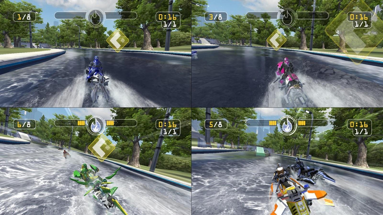 Riptide GP: Renegade – un juego en Android donde participas en carreras peligrosas en motos de agua. En este juego jugarás como un hidrocilón, que fue excluido injustamente del Gran Premio de la Liga de Riptide, y para recuperar su nombre y un lugar en el campeonato necesitas participar en carreras extremas. En este juego conducirás a lo largo de los embalses urbanos llenos de muchos obstáculos y peligros. Vuela tu moto de agua a través de las aguas estrechas e intenta superar a tus rivales llegando primero a la línea de meta. Juega en modo online, que presenta 8 tipos de juegos y compite con jugadores reales por el primer lugar en la tabla de clasificación. Este juego te ofrecerá numerosos modos, motos de agua inusuales y la capacidad de competir con otros jugadores.