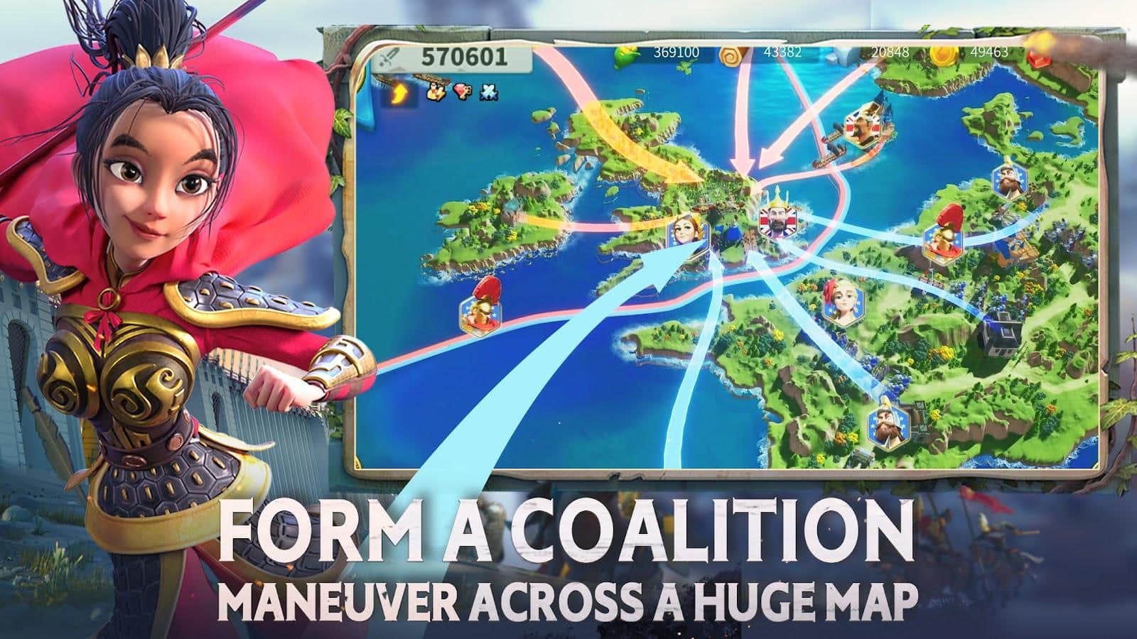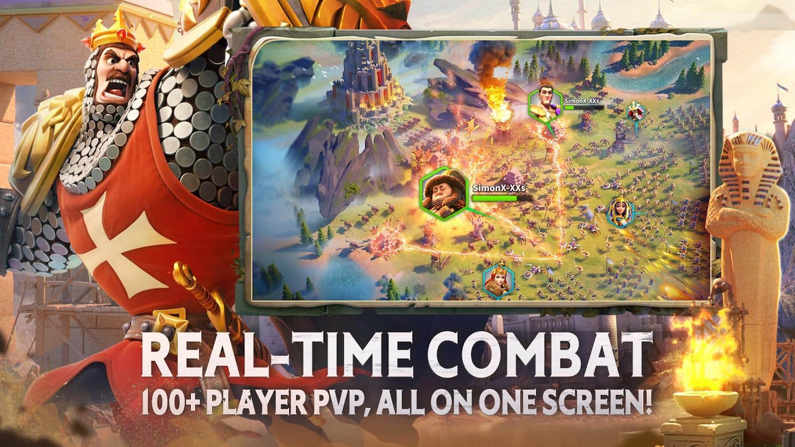 Rise of Kingdoms: Cruzada Perdida es una estrategia de guerra en Android donde necesitas desarrollar tu civilización. Construye edificios, reúne recursos, captura territorio y expande tu Reino. Ve desde el principio hasta 11 civilizaciones diferentes, fortalece su posición y conviértete en el mejor de los mejores. Únete a otros jugadores en alianzas y tácticas para ganar victorias en batallas reales.