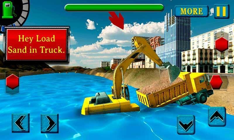 Simulador de Excavadora de Arena de Río – simulador de construcción en el que puedes controlar la excavadora para cargar arena en los camiones de construcción, carreteras. Durante el trabajo de excavación del suelo, ten mucho cuidado, ya que en estos lugares incluso se pueden encontrar diamantes. Así que puedes volverte fabulosamente rico. Este simulador incluye muchos vehículos, como: grúas, tractores, bulldozers, excavadoras, carretillas elevadoras e incluso camiones grandes. Así que el aburrimiento en el juego simplemente no lo tendrás.