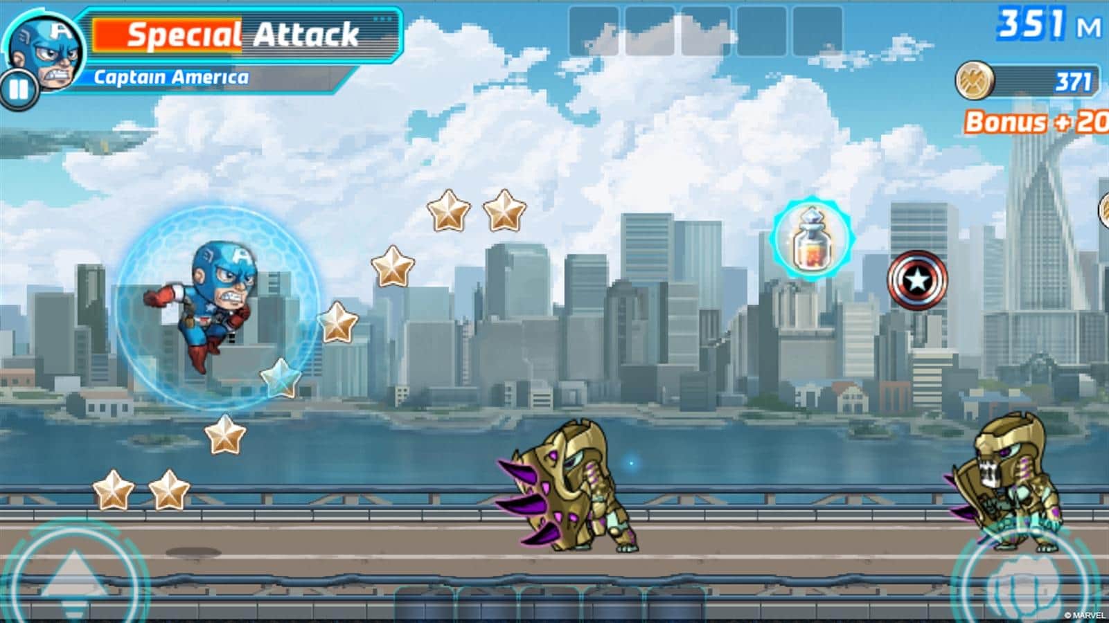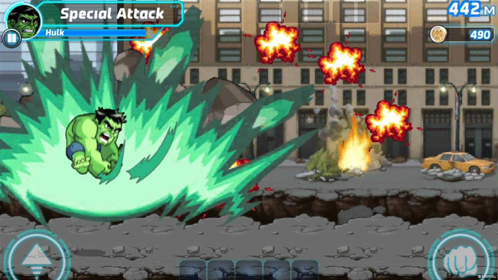 Corre Salta Aplasta para Windows Phone en el que controlas a los superhéroes. Elige uno de los muchos héroes y corre, salta y lucha contra los supervillanos y sus secuaces. Vuela con Iron Man, aplasta todo con un poderoso Hulk, salta con Capitán América y dispara al vuelo con Viuda Negra. Mejora tus resultados usando el cambio de personajes y recoge bonificaciones que aumentarán el poder de los personajes.