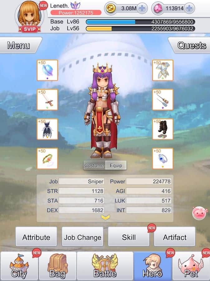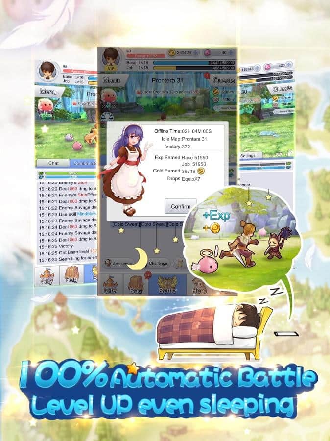 Ro: Idle Poring – juego, donde serás transportado a la mágica tierra de Ragnarok. En este juego tu tarea es viajar a diferentes mundos y luchar contra enemigos. Los jugadores del juego apreciarán las batallas automáticas donde aumentarás tu experiencia, pasando por un mapa complejo cuando estés desconectado y al mismo tiempo, sin perder ningún bono y ganancias. Las mascotas en este juego también pueden participar en las batallas, puedes enviar hasta 20 mascotas en la misión de investigación. En el transcurso de los viajes, las mascotas podrán producir sus propias armas, comida y elevar su nivel. La naturaleza de las misiones de investigación está relacionada con la capacidad de las mascotas para maximizar la fuerza, elige cuidadosamente cuál enviar. Viaja por el enorme mundo y descubre nuevas habilidades.
