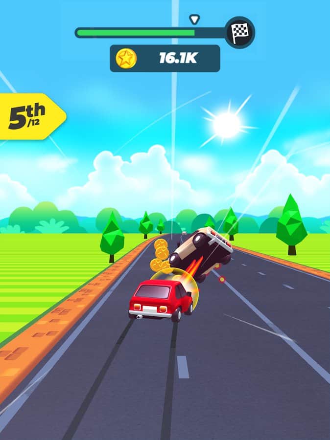 Cars a medio cocer - carrera con elementos de clicker en Android. En este juego tienes que participar en carreras en las que necesitas destruir a los coches rivales para llegar primero a la meta y ganar más dinero. Con las monedas ganadas puedes mejorar tu coche en el garaje y desbloquear modelos más potentes. ¿Y puedes convertirte en el conductor loco? Características: