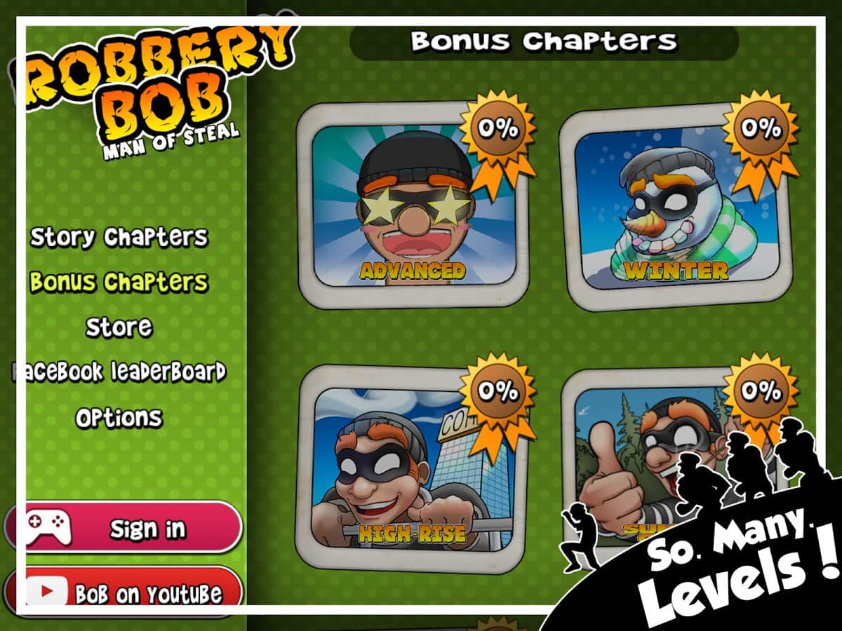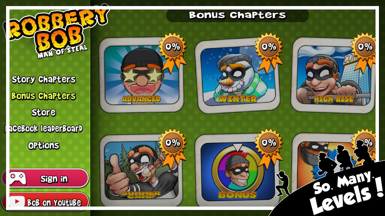 Robbery Bob - es un ladrón - un ladrón de casas, que no tiene mucha suerte, está haciendo su trabajo sucio lenta pero seguramente - es decir, robando casas, apartamentos y oficinas. Toma lo que encuentra a mano - dinero, oro, joyas, souvenirs, equipos e incluso ¡el control remoto de la tele! Y no tiene miedo - después de todo, roba incluso durante el día. El único problema es no ser atrapado ni por los dueños ni por los guardias ni por los perros. ¡Y para esto hay que intentar esperar en algún lugar, esconderse en algún lugar y salir con lo que has conseguido - afortunadamente el juego prevé tal escenario!