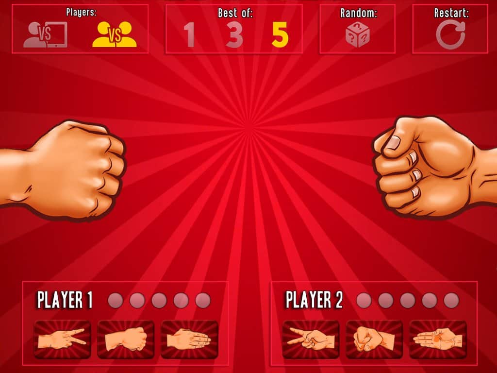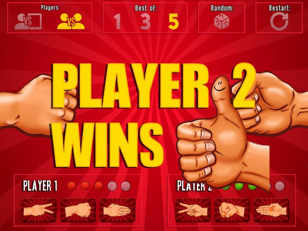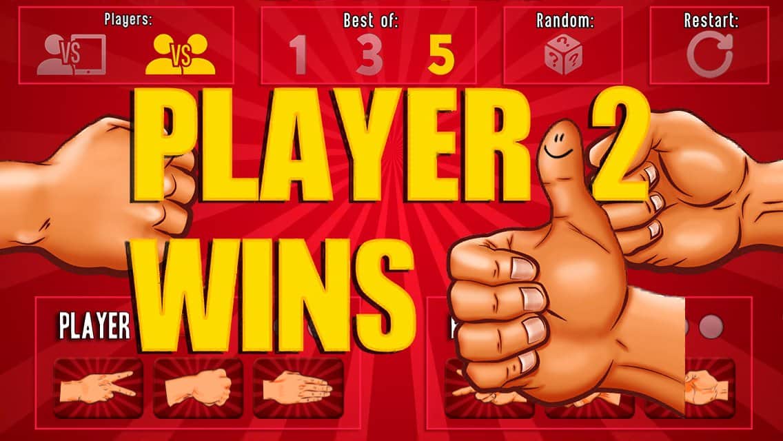 La Batalla de Piedra Papel Tijera RPS es un gran juego en Android, conocido por todos como "piedra-papel-tijera". Si alguna vez has resuelto una disputa con amigos o elegiste un lugar al que ir con este simple juego, entonces esta aplicación es para ti. Instala este juego en tu teléfono o tableta y organiza partidas con tus amigos en el mismo dispositivo o prueba tu suerte jugando contra la IA. En este juego podrás elegir el gesto ganador o confiar en la suerte y elegirlo automáticamente. Juega y diviértete.
