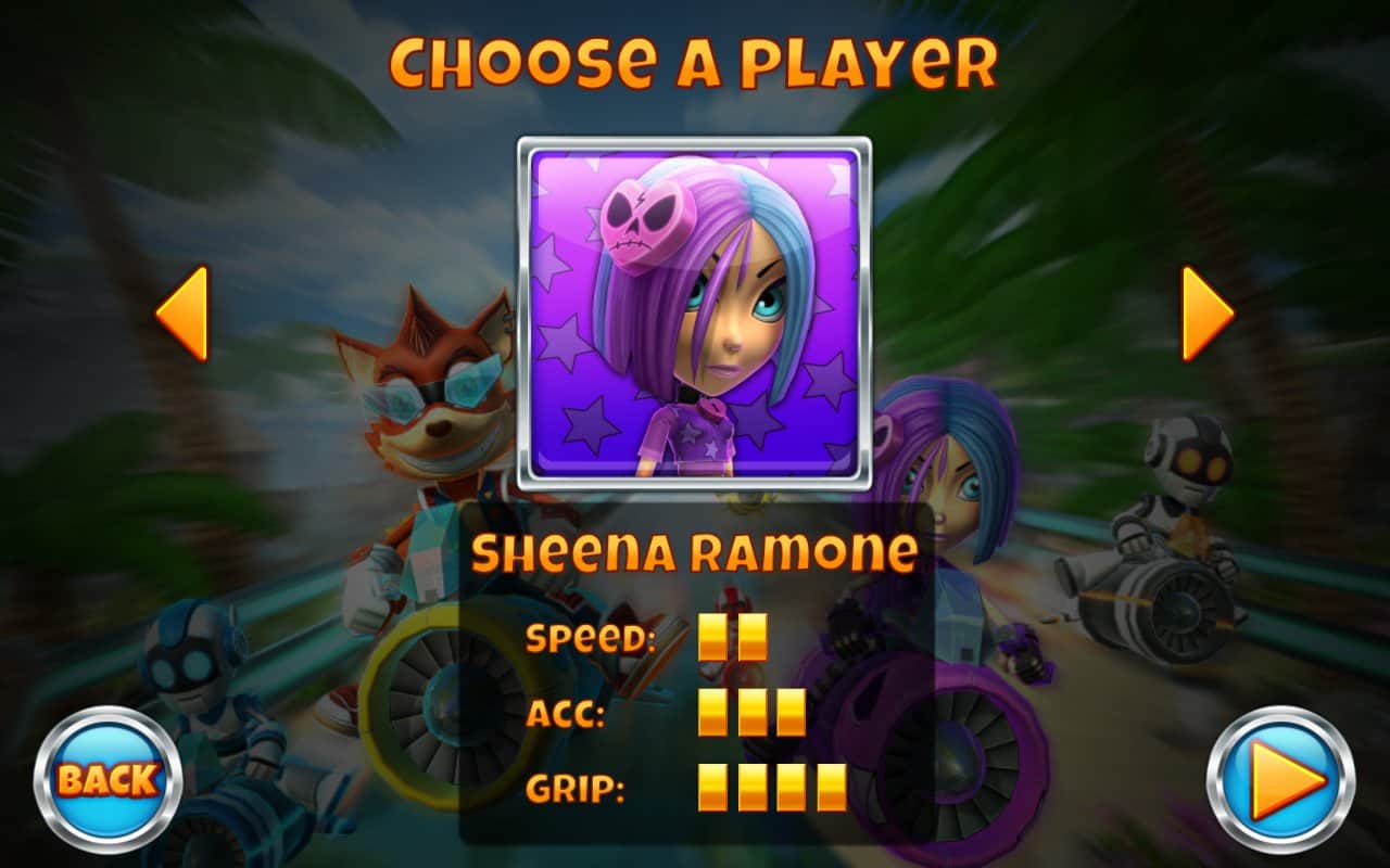 Rocket Racer – cohetes locos, velocidad desenfrenada y una conducción de adrenalina están esperando a tu jugador. Fantásticos niveles brillantes, personajes interesantes, pistas alucinantes con varios obstáculos esperando a su piloto. Elige tu personaje entre Fox Rock y Bus Ramon y avanza hacia nuevas victorias. Usa potenciadores, diferentes armas y objetos especiales para lograr tu objetivo.