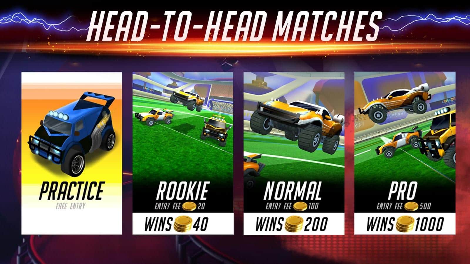 Rocket League - proyecto de escritorio que no solo ha alcanzado una gran popularidad, y la razón de tal interés por parte de los jugadores, simplemente, es la combinación de ideas simples, combinadas con una jugabilidad dinámica que mezcla carreras y elementos de fútbol que pueden conquistar el corazón de cualquier jugador. Como resultado, en las plataformas móviles, se ha lanzado recientemente una gran cantidad de diferentes clones, sin embargo, todo esto fue a través de proyectos y finalmente estamos complacidos con el buen juego llamado Rocketball: Championship Cup. Rocketball: Championship Cup - clon completo del proyecto de escritorio, por supuesto con modificaciones que requieren un dispositivo móvil, de lo contrario no podrás disfrutar plenamente de la jugabilidad, conduciendo y anotando goles en la portería de los rivales.
