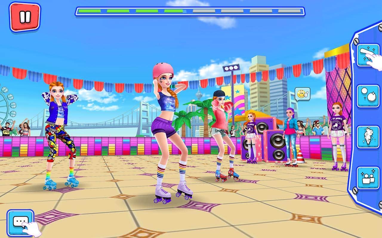 Chicas Patinadoras - Baila sobre Ruedas es un juego divertido para chicas en Android donde ayudarás a su personaje a hacerse famosa en la pista de patinaje. Tu heroína ha podido patinar sobre ruedas durante mucho tiempo, pero para aprender a bailar necesitará tu ayuda y la guía de tu amiga Maddie. Patina sobre los patines y realiza trucos improbables que te ayudarán a impresionar al exigente jurado y a lograr resultados increíbles. Viste a tu personaje con cosas nuevas y elegantes, haz un maquillaje llamativo y ve a una pista de patinaje para conquistar al público y motivar a Johnny con tu nueva pasión.