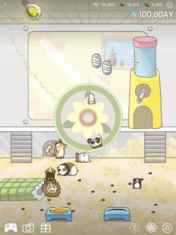 Ratón Rodante - Clicador de Hámster en Android, donde observarás cómo el ratón genera electricidad corriendo en una rueda. En este juego, tu tarea principal será hacer clic en la pantalla de tu teléfono o tableta para personalizar ratones, hámsteres y conejillos de indias que corren alrededor en la rueda. Población tu habitación con varios roedores y destílalos en gatos y arañas. Tus mascotas girarán la rueda con gran placer, y tú obtendrás electricidad. Decora la habitación en la que viven los roedores y compra nuevos muebles para ellos. En total, este juego cuenta con 12 adorables animales, numerosos bonos y potenciadores.