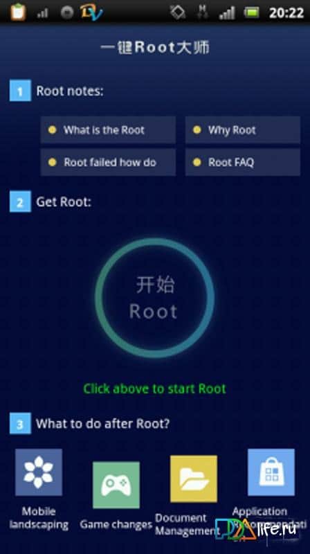 Root Dashi (Zhiqupk Root) - una gran aplicación para Android para obtener un Root cuyos principales beneficios son la seguridad, es decir, la creación de copias de seguridad de archivos, comparar MD5 después de la pérdida de comunicación y la velocidad de obtener Root. La aplicación incluye z4root, UniversalAndRoot, kingroot, etc., lo que muestra un gran número de formas de obtener Root y un servicio en la nube para recuperar el Root.