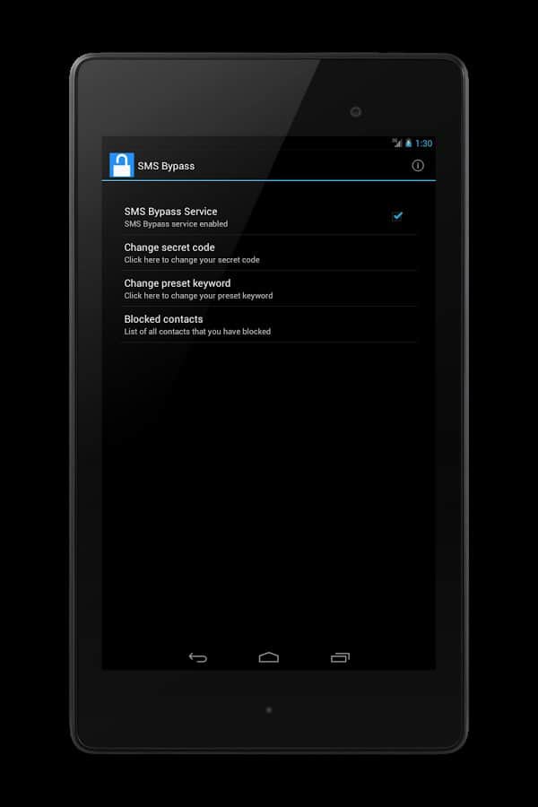 [root] SMS Bypass – aplicación conveniente para Android para aquellos que a menudo olvidan o temen olvidar qué gesto o contraseña bloqueó la pantalla de su dispositivo. [root] SMS Bypass te permitirá eludir de forma remota la pantalla de bloqueo de tu teléfono, enviando SMS, y así restablecer el patrón de gesto o contraseña establecido anteriormente. También vale la pena mencionar que este programa incluye una función para bloquear todos tus contactos. Disfruta.