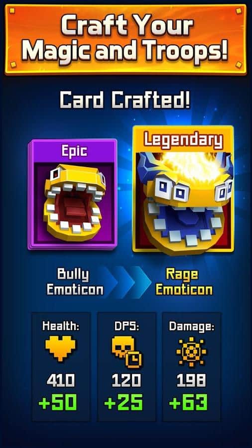 Clanes Royale – Choque de Guerras - Colecciona tu propio mazo de cartas super y úsalo para derrotar al enemigo. Este juego podría ser llamado un clon de otro juego del que todos conocemos, pero no lo es. La idea aquí es la misma, debes destruir el castillo con un monstruo que diseñaste. Sin embargo, la implementación de este juego es ligeramente diferente, muchos otros monstruos y modos de juego. Lucha por los primeros lugares en el ranking.
